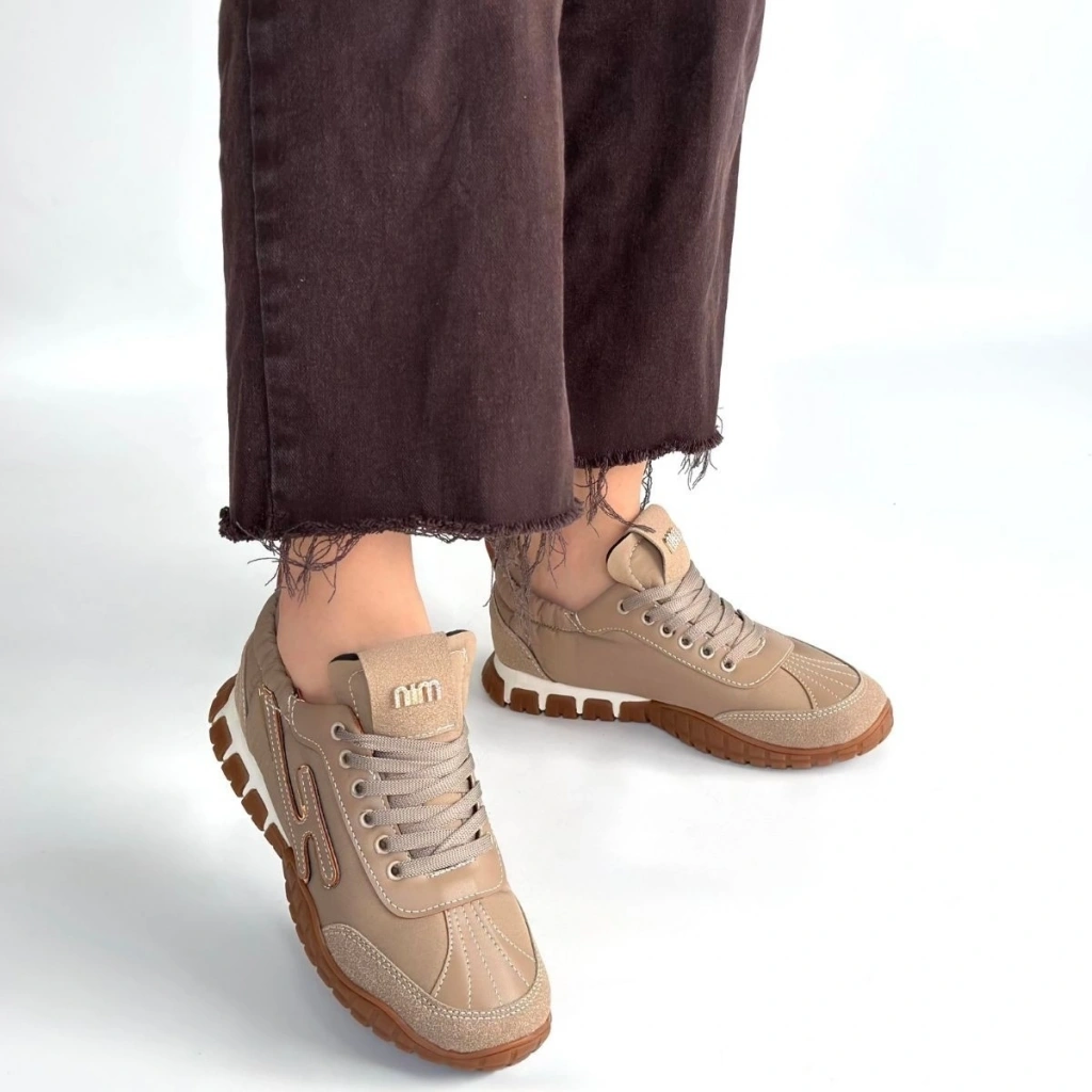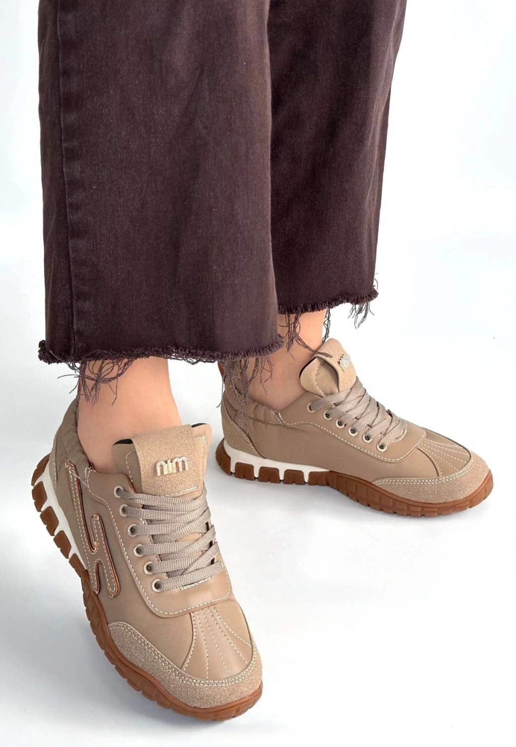 Riaf Bej Cilt Bağcıklı Spor Ayakkabı