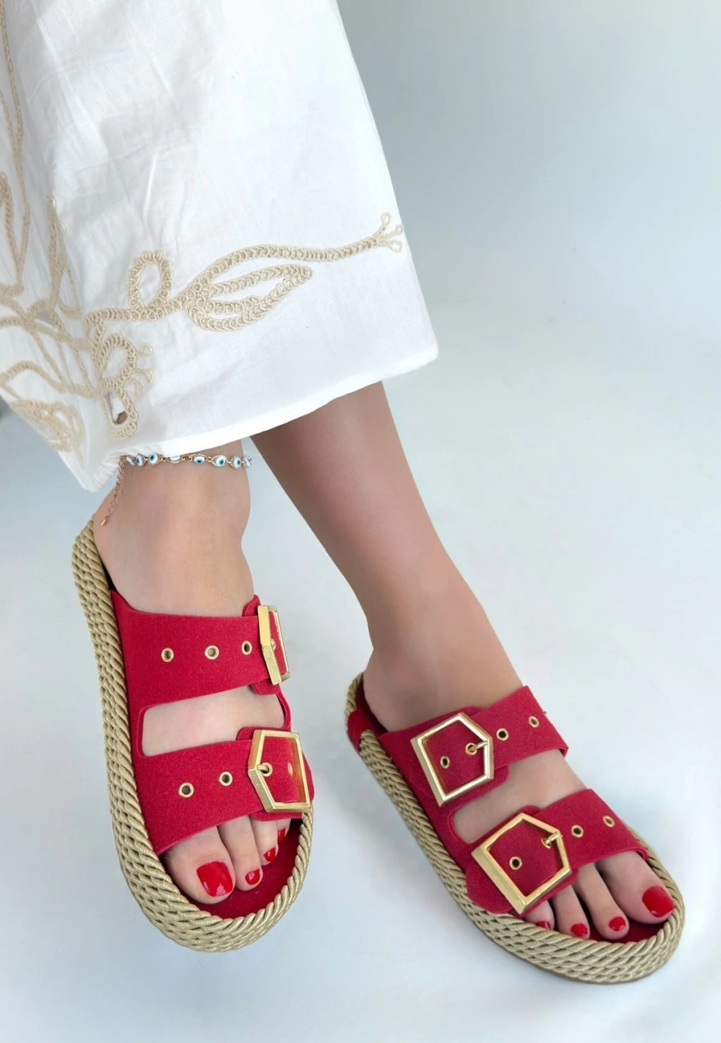 Loera Pemba Nubuk Çift Tokalı Terlik