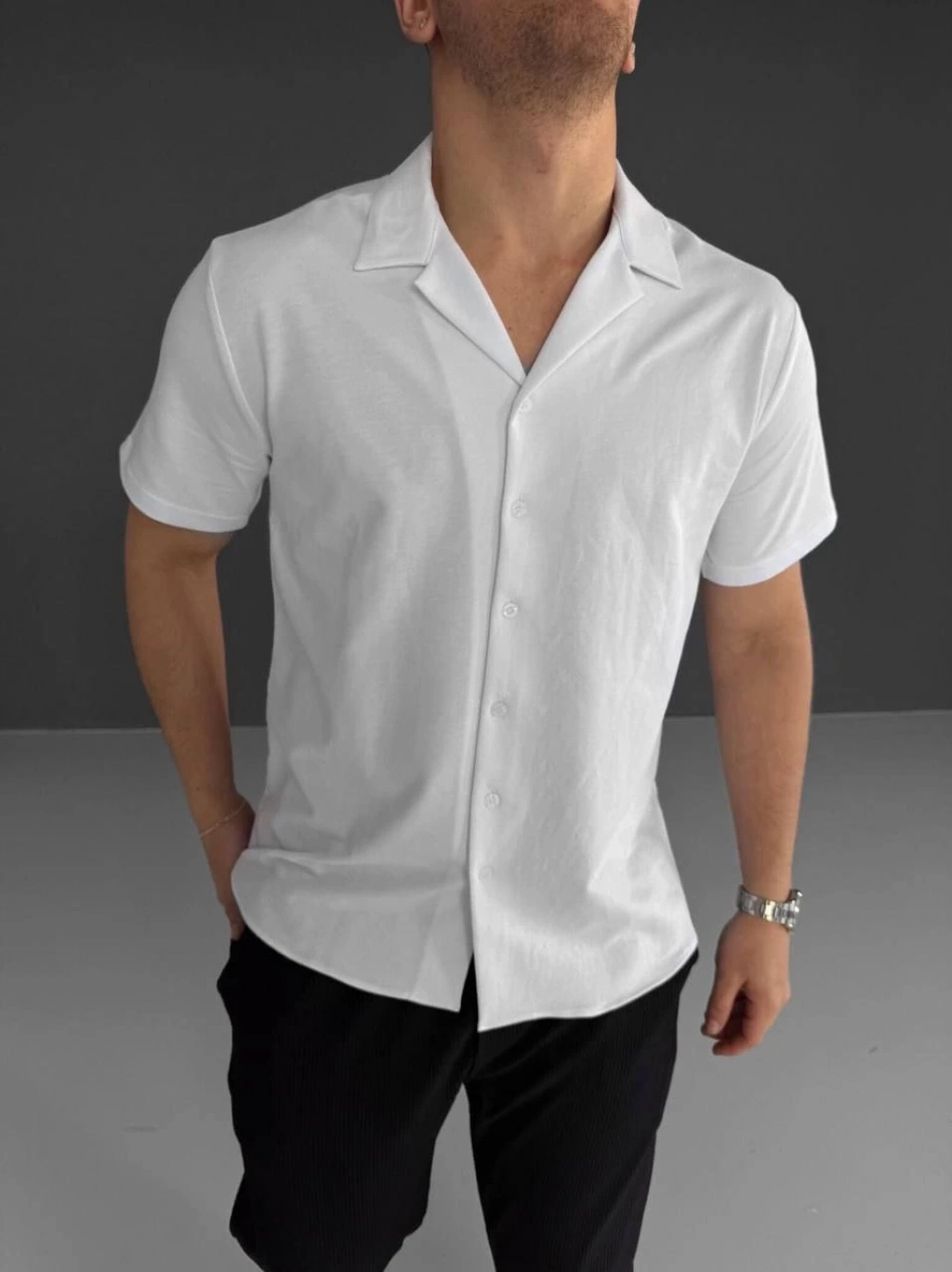 İki İplik Kumaş Gömlek - Beyaz