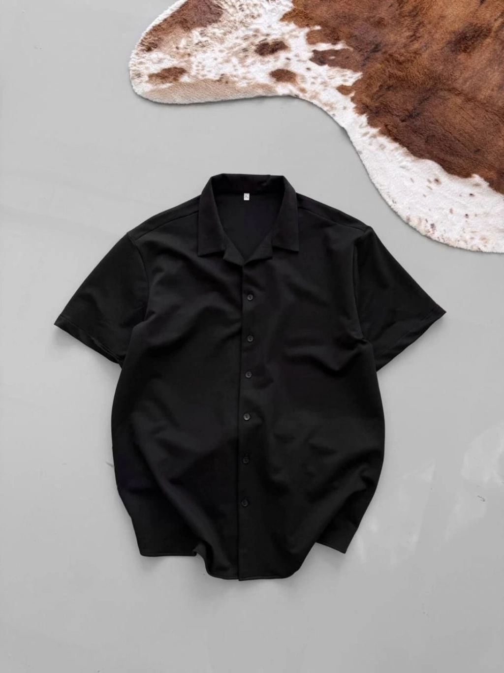 İki İplik Kumaş Baskılı Gömlek - Siyah