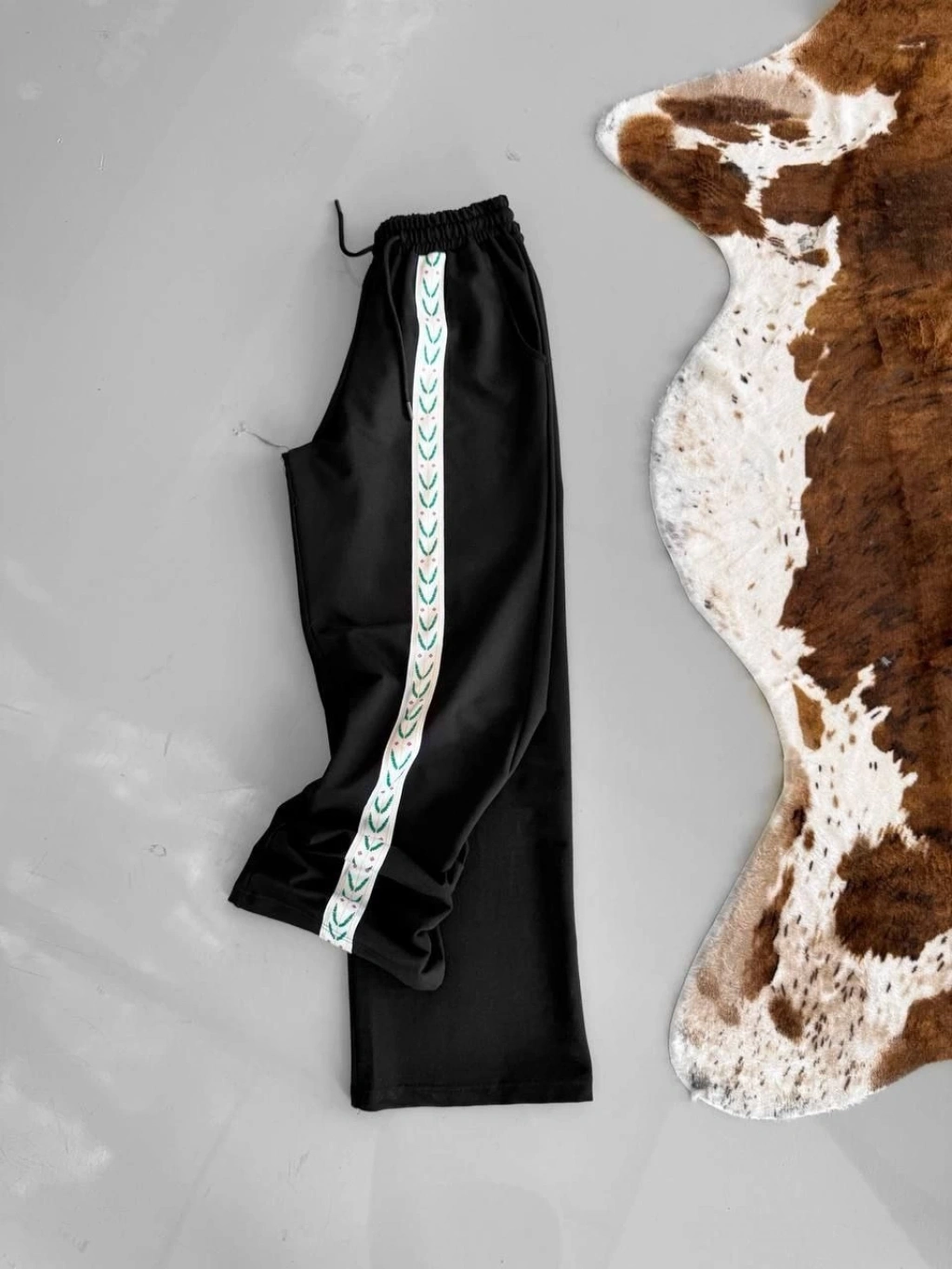 Erkek Yandan Şeritli Boru Paça Eşofman Altı 3 iplik Pamuklu Eşofman - Siyah