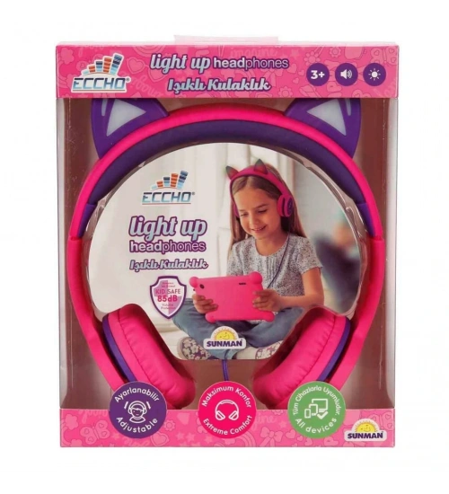 Işıklı Kedi Kulaklı Kablolu Kulak Üstü Kulaklık