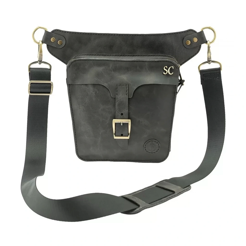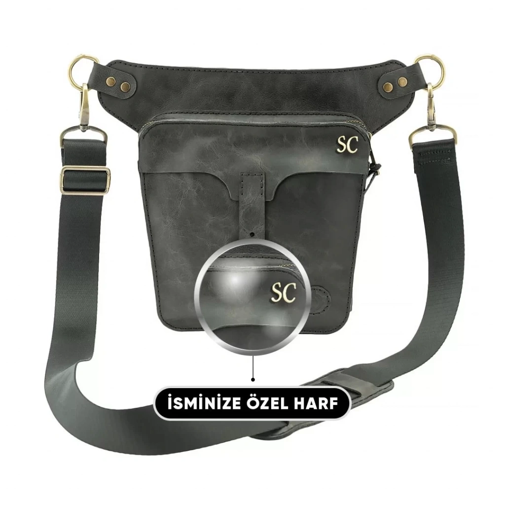 İsme Özel All in One Bel ve Bacak Çantası - %100 Deri - AC15001 - Antrasit