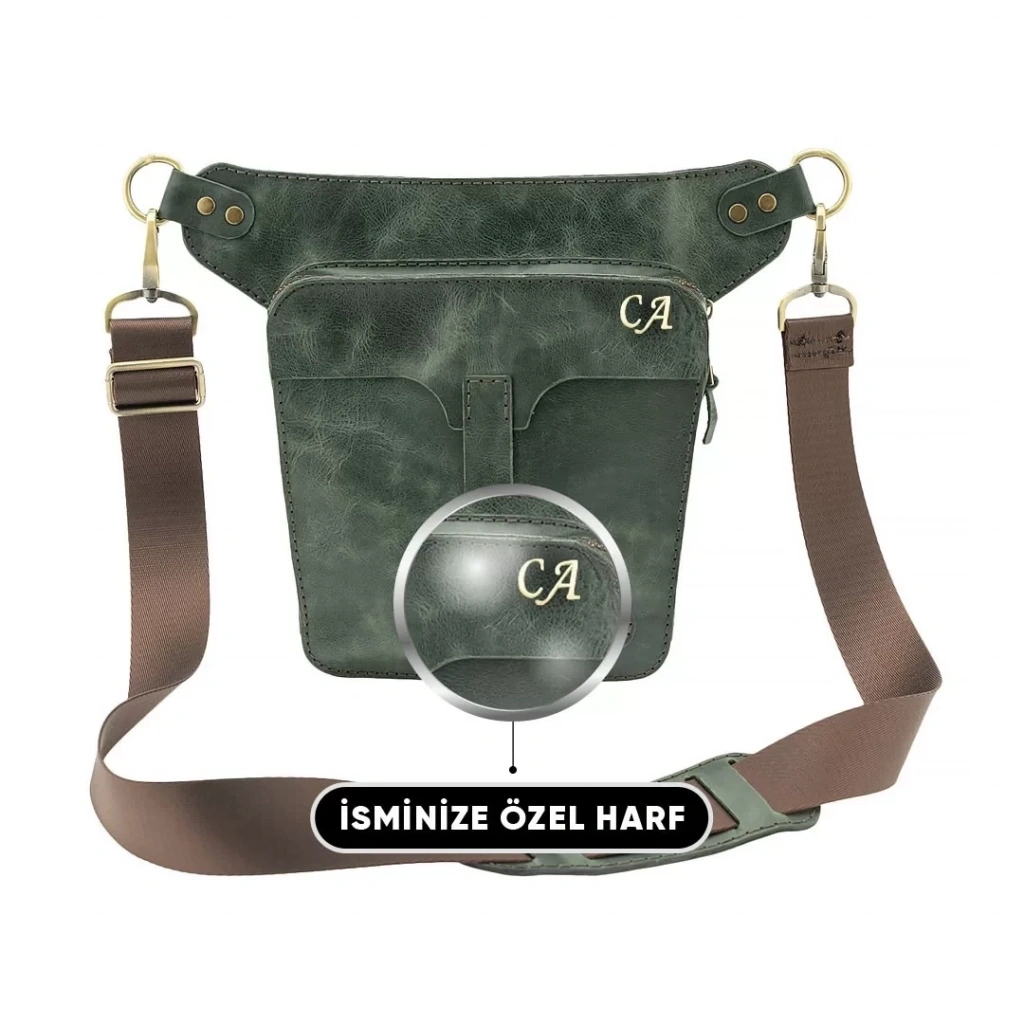 İsme Özel All in One Bel ve Bacak Çantası - %100 Deri - AC15001 - Haki