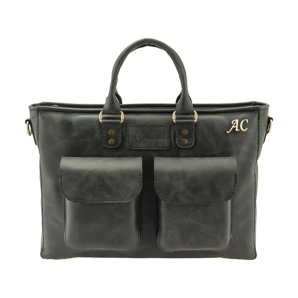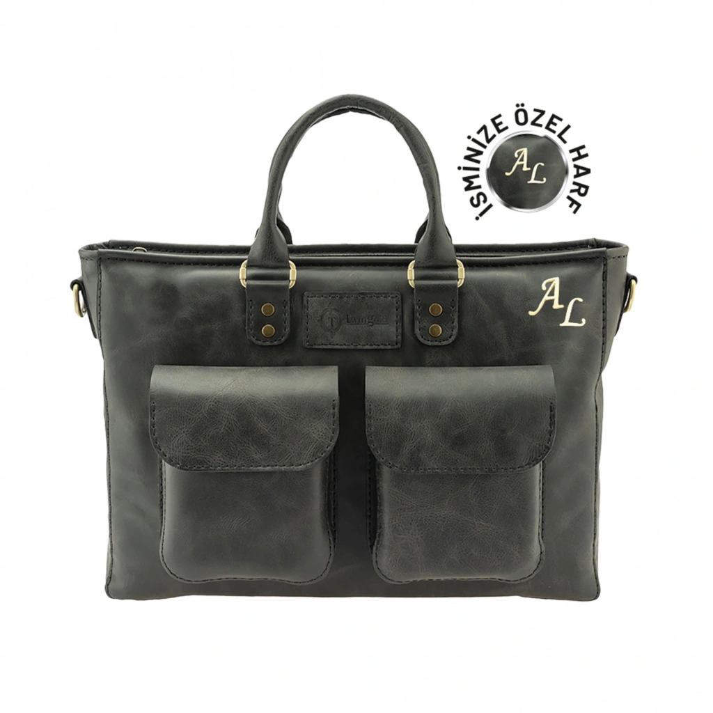 İsme Özel Askılı Cepli Evrak - Laptop Çantası - %100 Rainbow Deri - AC09002 - Antrasit