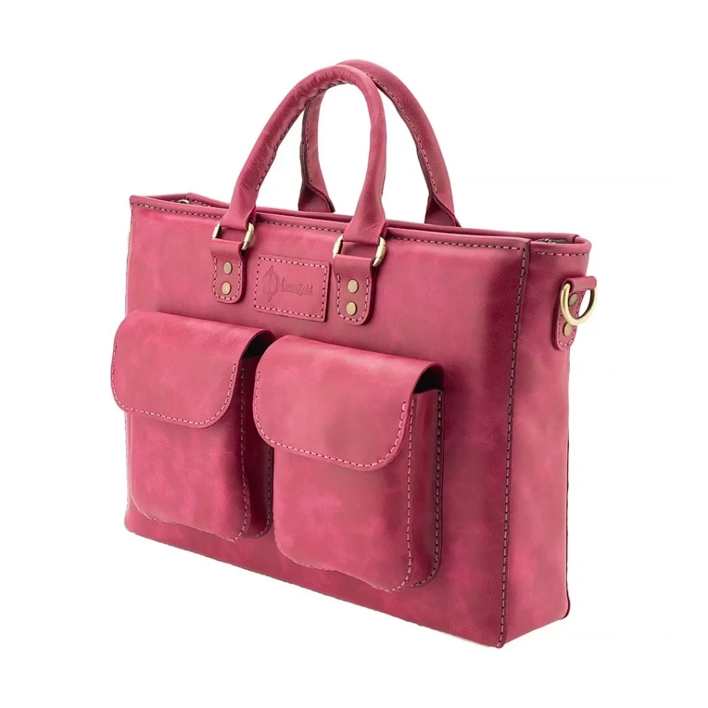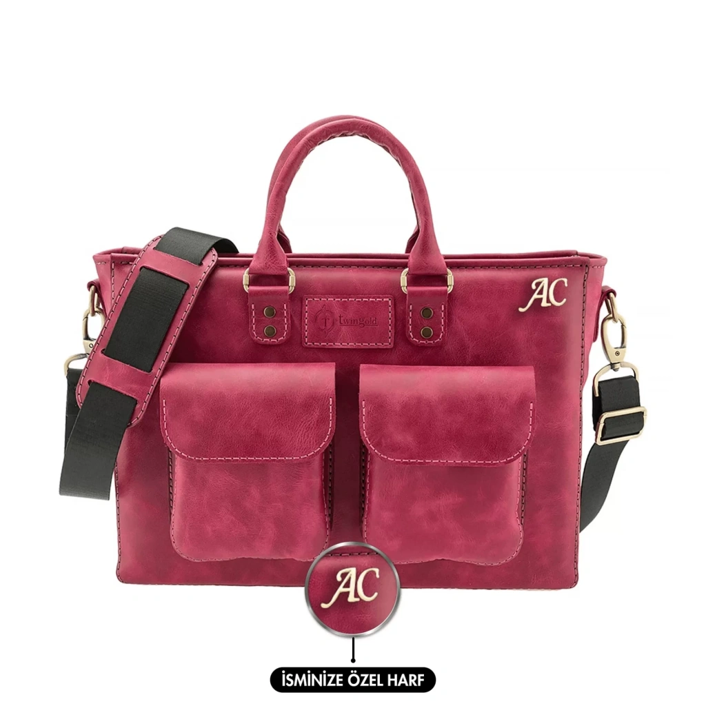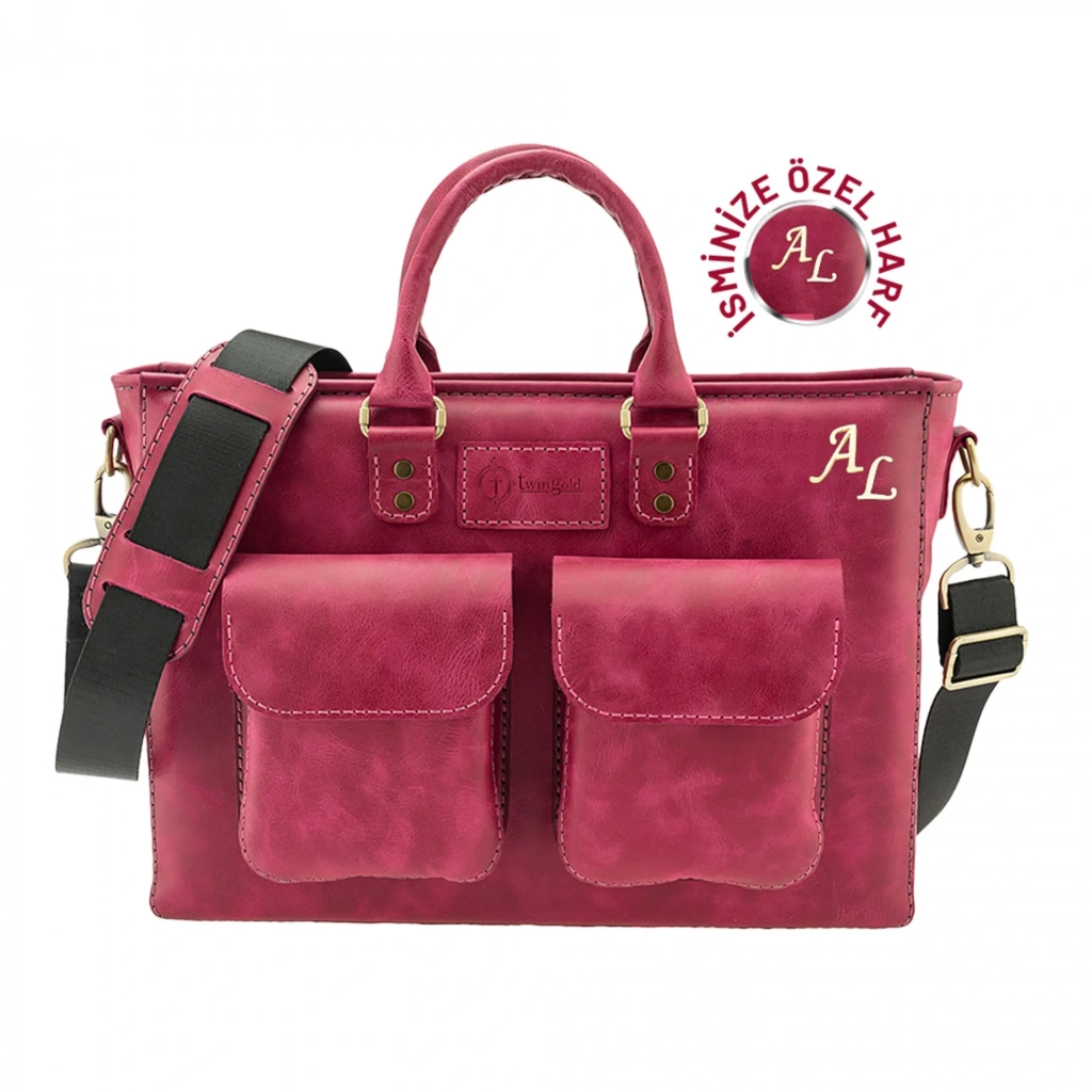 İsme Özel Askılı Cepli Evrak - Laptop Çantası - %100 Rainbow Deri - AC09002 - Fuşya