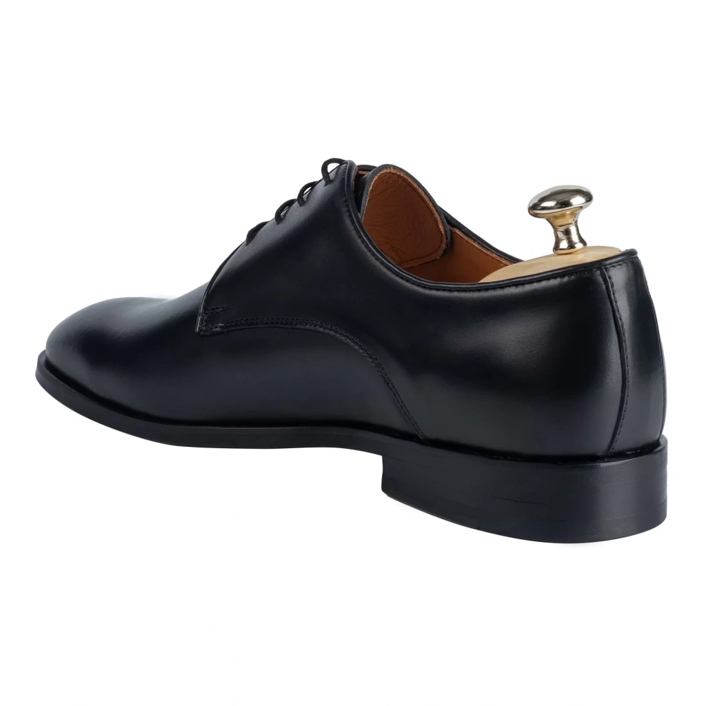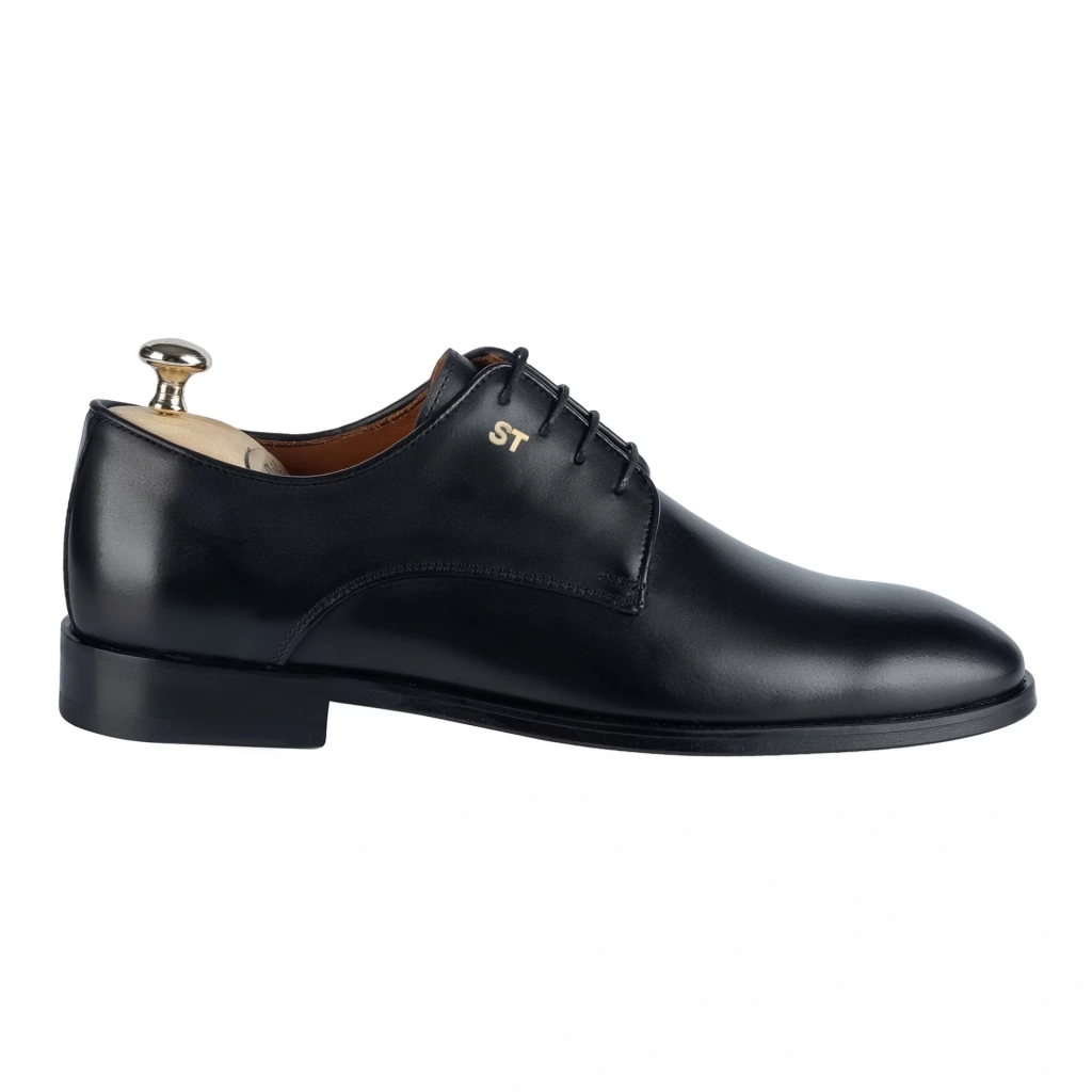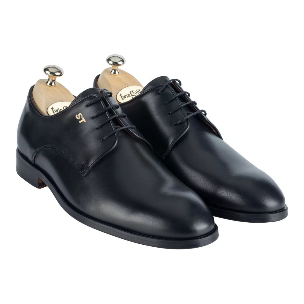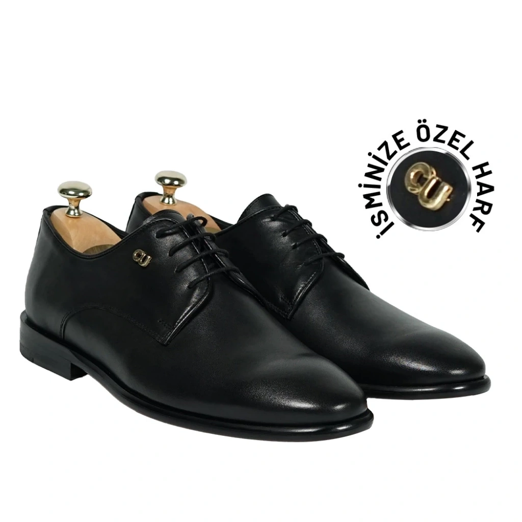 İsme Özel Bağcıklı Kösele Erkek Ayakkabı - %100 Hakiki Antik Deri - Altın Harf - AA01001 - Siyah