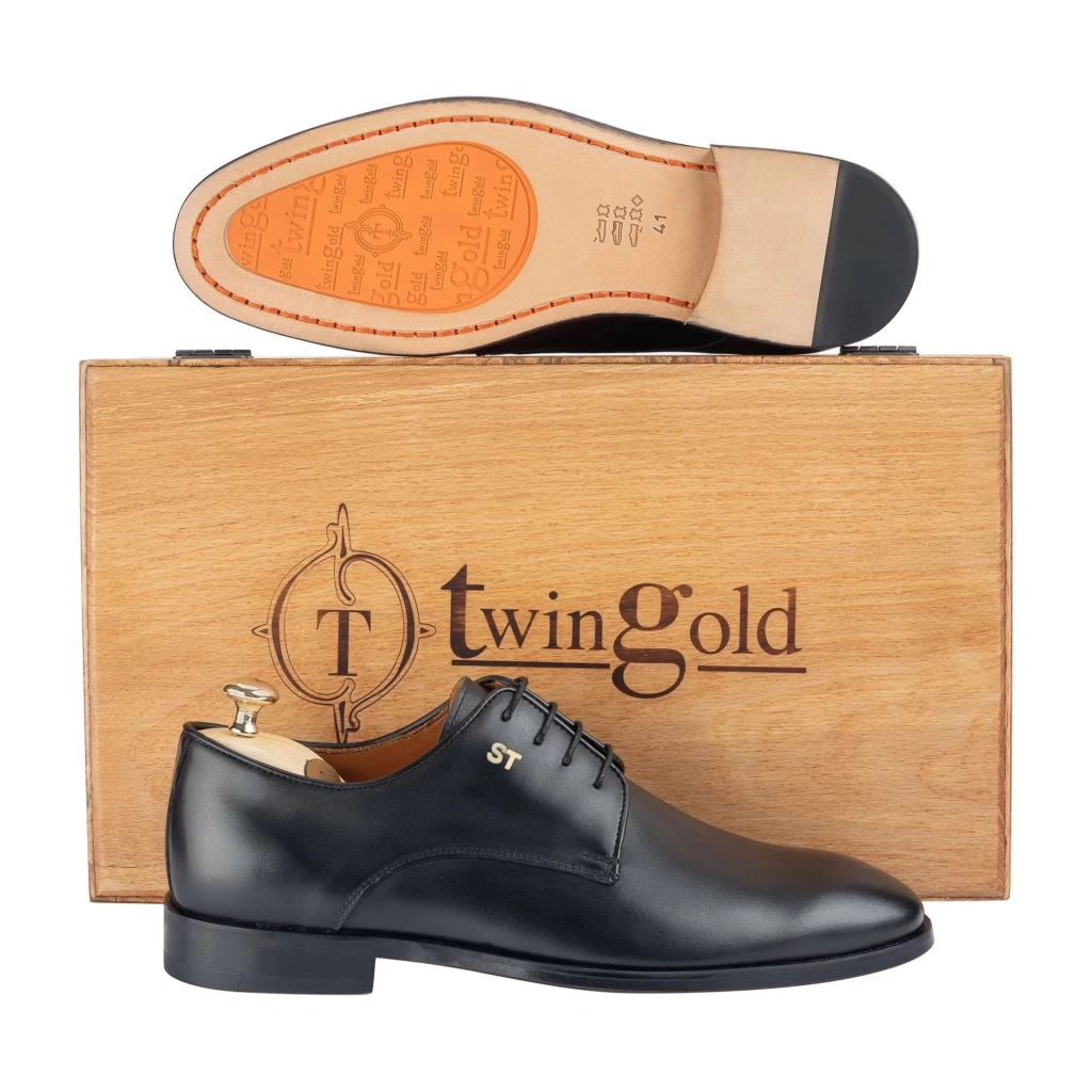 Altın harfli ayakkabılarımız ahşap kutusunda, meşe kalıp, pirinç çekecek, altın sertifikası ve toz torbasıyla birlikte gönderilmektedir.