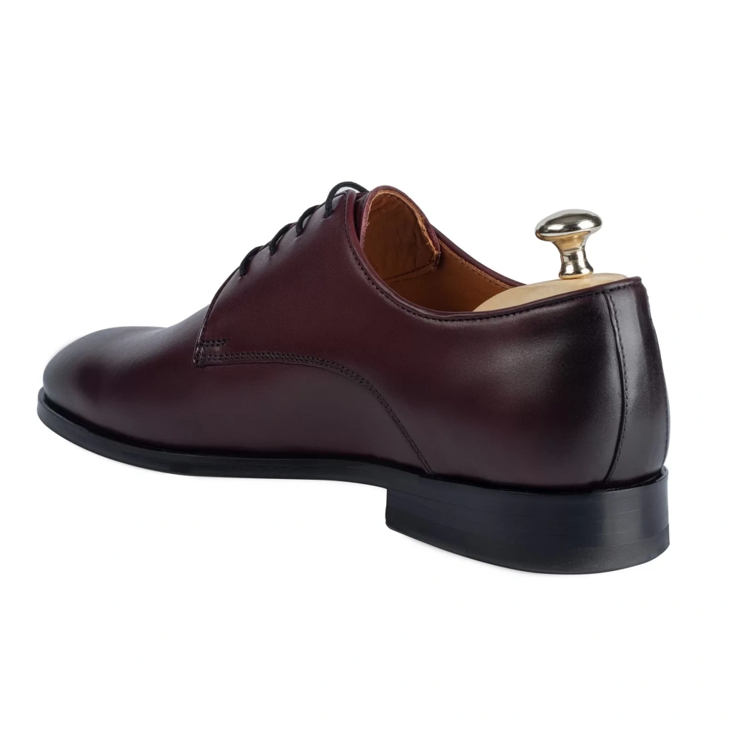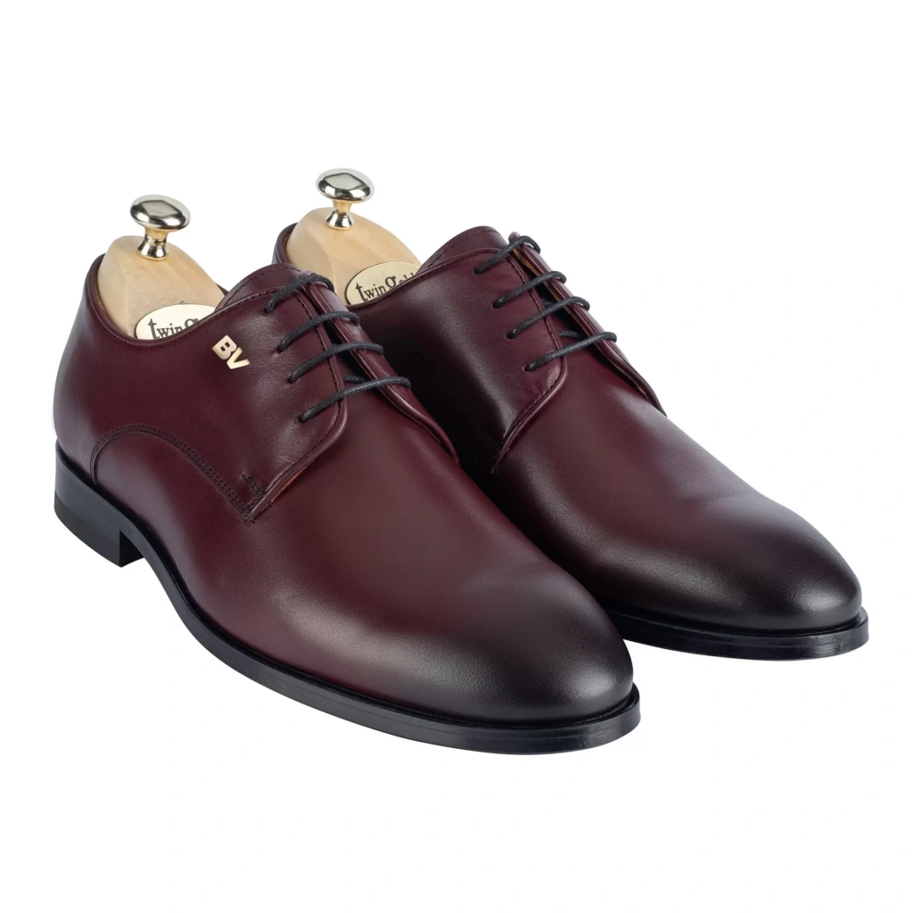 İsme Özel Bağcıklı Kösele Erkek Ayakkabı - %100 Hakiki Antik Deri - Gümüş Konseptli - AA01009 - Bordo