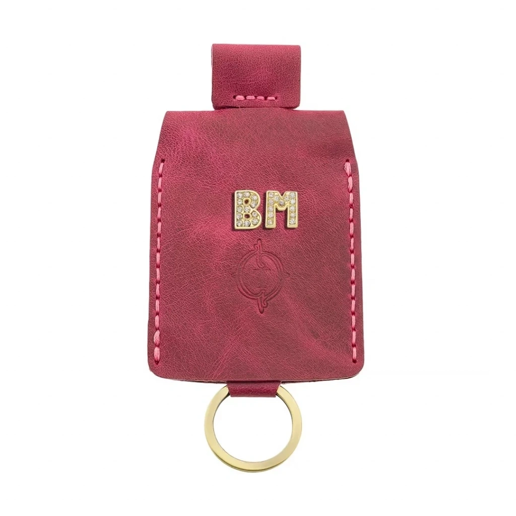 İsme Özel Çıtçıtlı Anahtarlık - % 100 Rainbow Deri - AG01001 - Fuşya