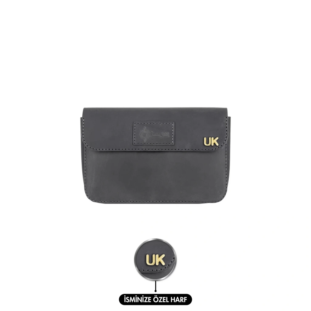 İsme Özel Çıtçıtlı El Çantası - %100 Crazy Deri - AC14002 - Antrasit