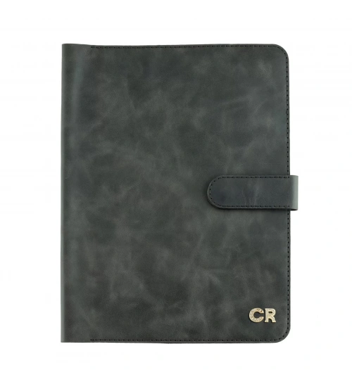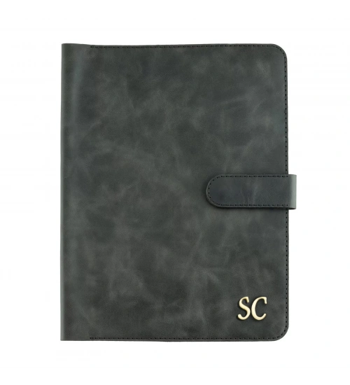 İsme Özel Çıtçıtlı Fonksiyonlu iPad Organizer - %100 Rainbow Deri - ET01002 - Antrasit