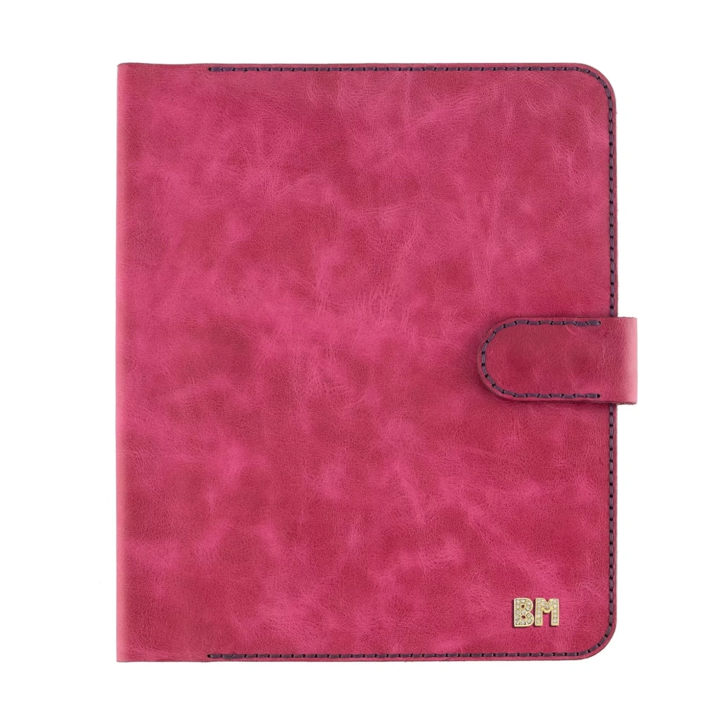 İsme Özel Çıtçıtlı Fonksiyonlu iPad Organizer - %100 Rainbow Deri - ET01002 - Fuşya