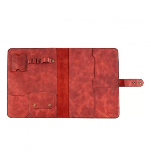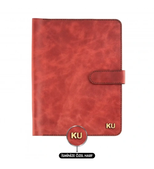 İsme Özel Çıtçıtlı Fonksiyonlu iPad Organizer - %100 Rainbow Deri - ET01002 - Kırmızı