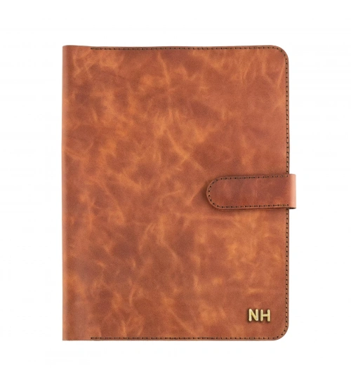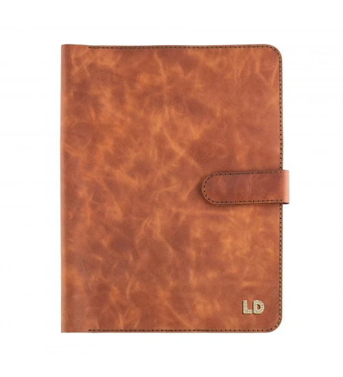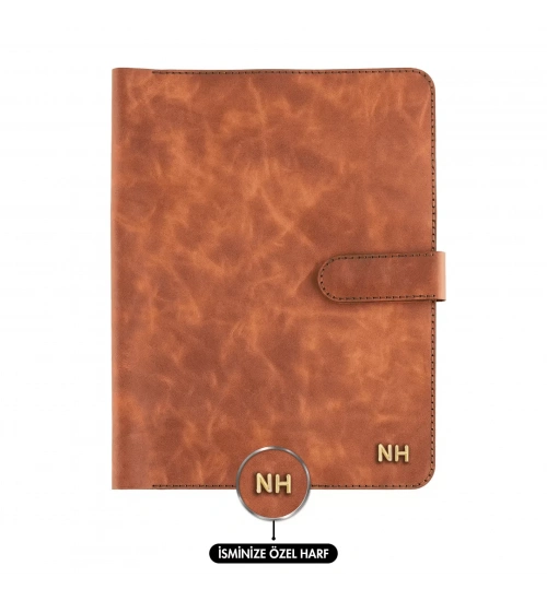 İsme Özel Çıtçıtlı Fonksiyonlu iPad Organizer - %100 Rainbow Deri - ET01002 - Tobacco