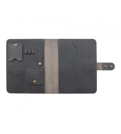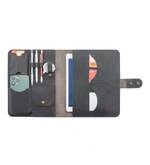 İsme Özel Çıtçıtlı Fonksiyonlu iPad Organizer 10,9" (İnç) - %100 Crazy Deri - ET01004 - Antrasit