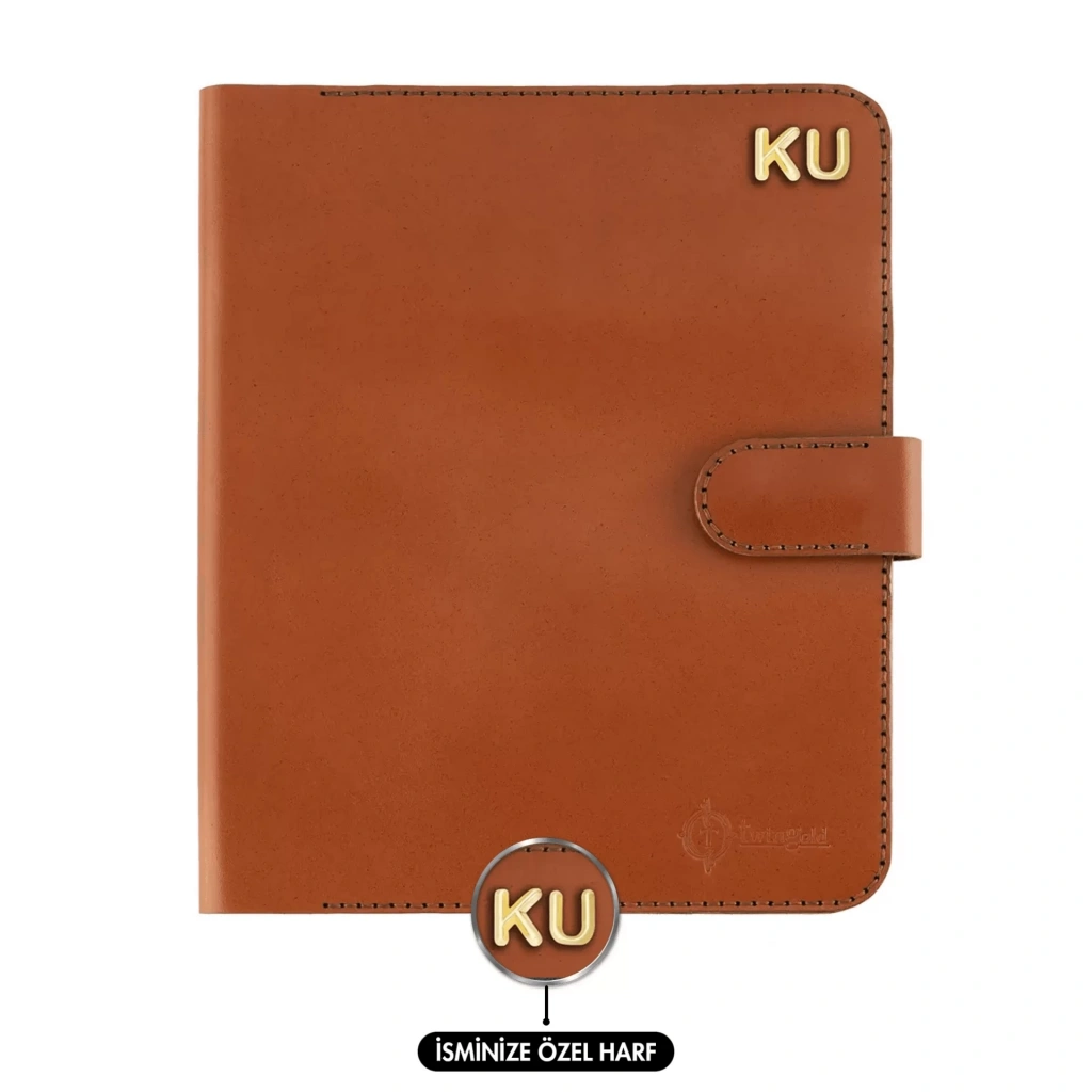 İsme Özel Çıtçıtlı Fonksiyonlu Macbook Organizer - %100 Tiesto Deri - ET02003 - Tobacco