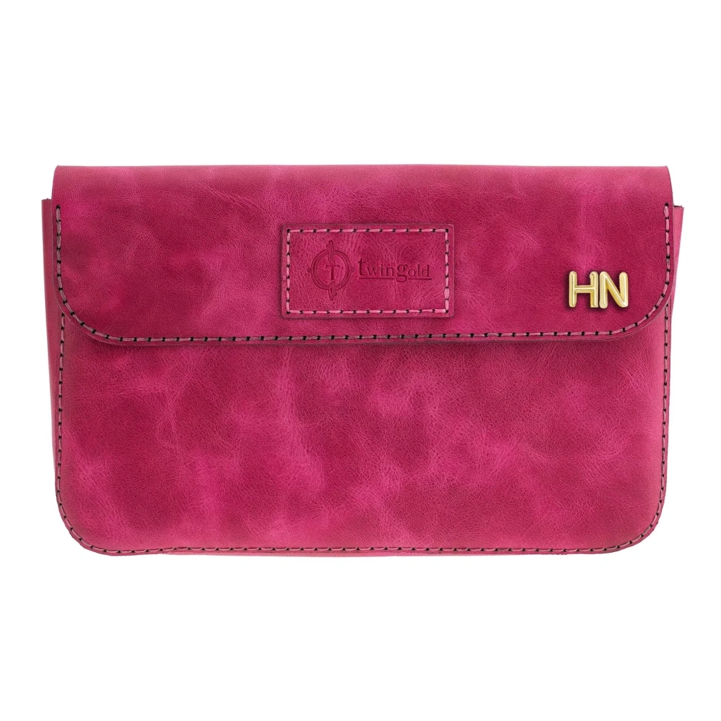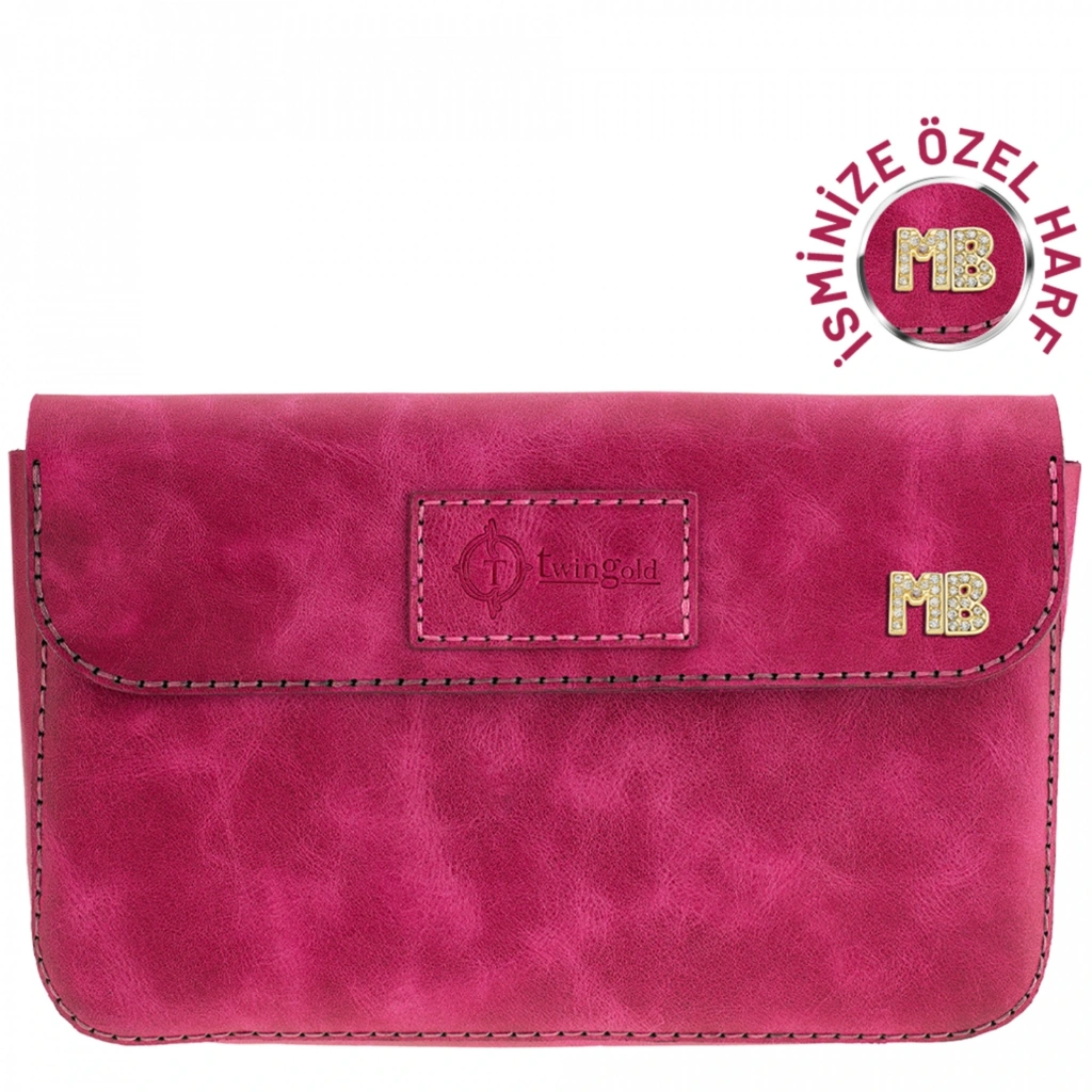 İsme Özel Çıtçıtlı Küçük El Çantası - %100 Rainbow Deri - AC14001 - Fuşya