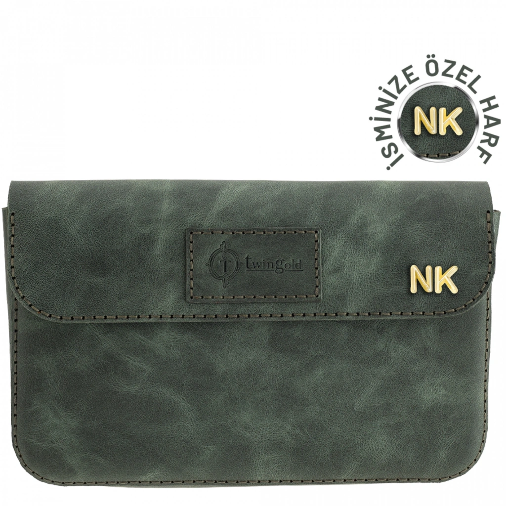 İsme Özel Çıtçıtlı Küçük El Çantası - %100 Rainbow Deri - AC14001 - Haki