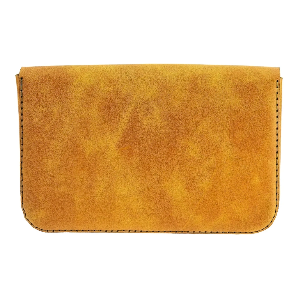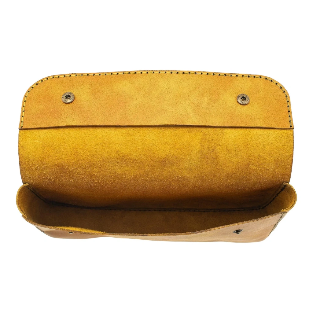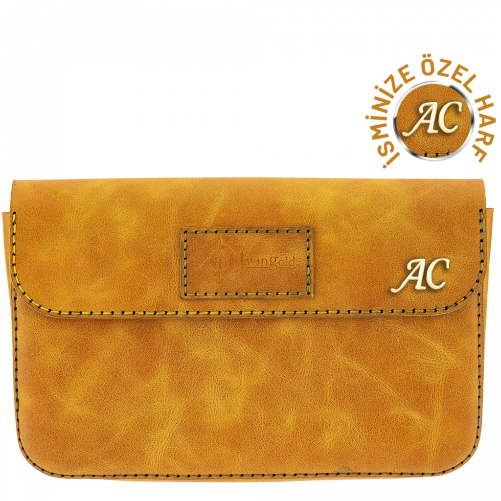 İsme Özel Çıtçıtlı Küçük El Çantası - %100 Rainbow Deri - AC14001 - Hardal Sarısı
