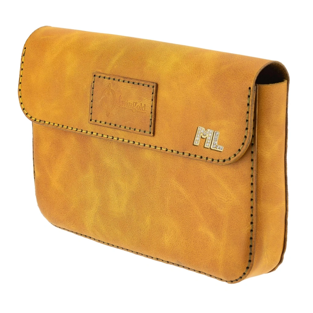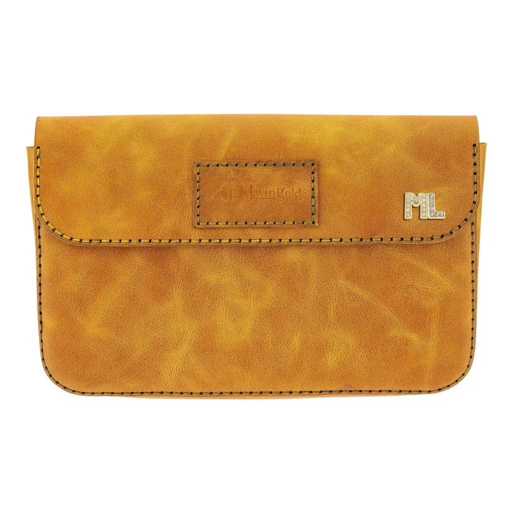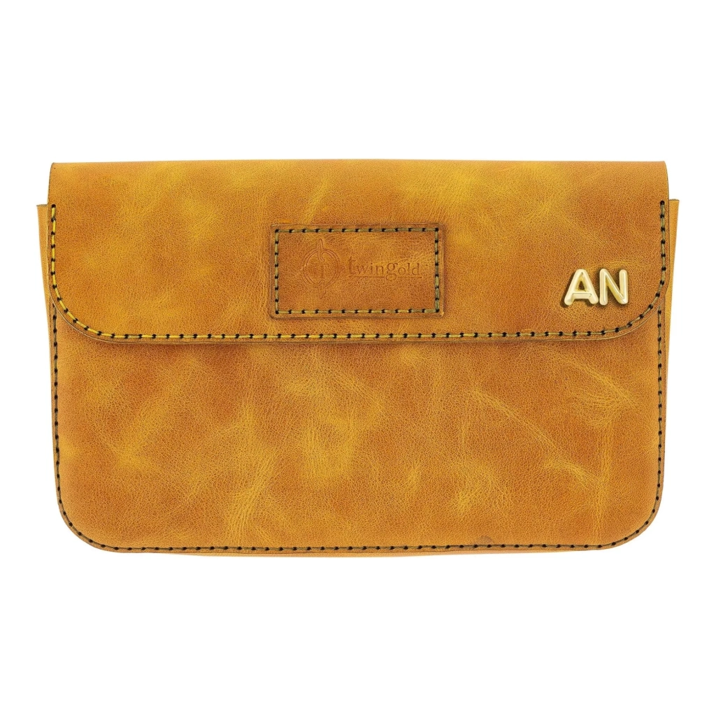 İsme Özel Çıtçıtlı Küçük El Çantası - %100 Rainbow Deri - AC14001 - Hardal Sarısı