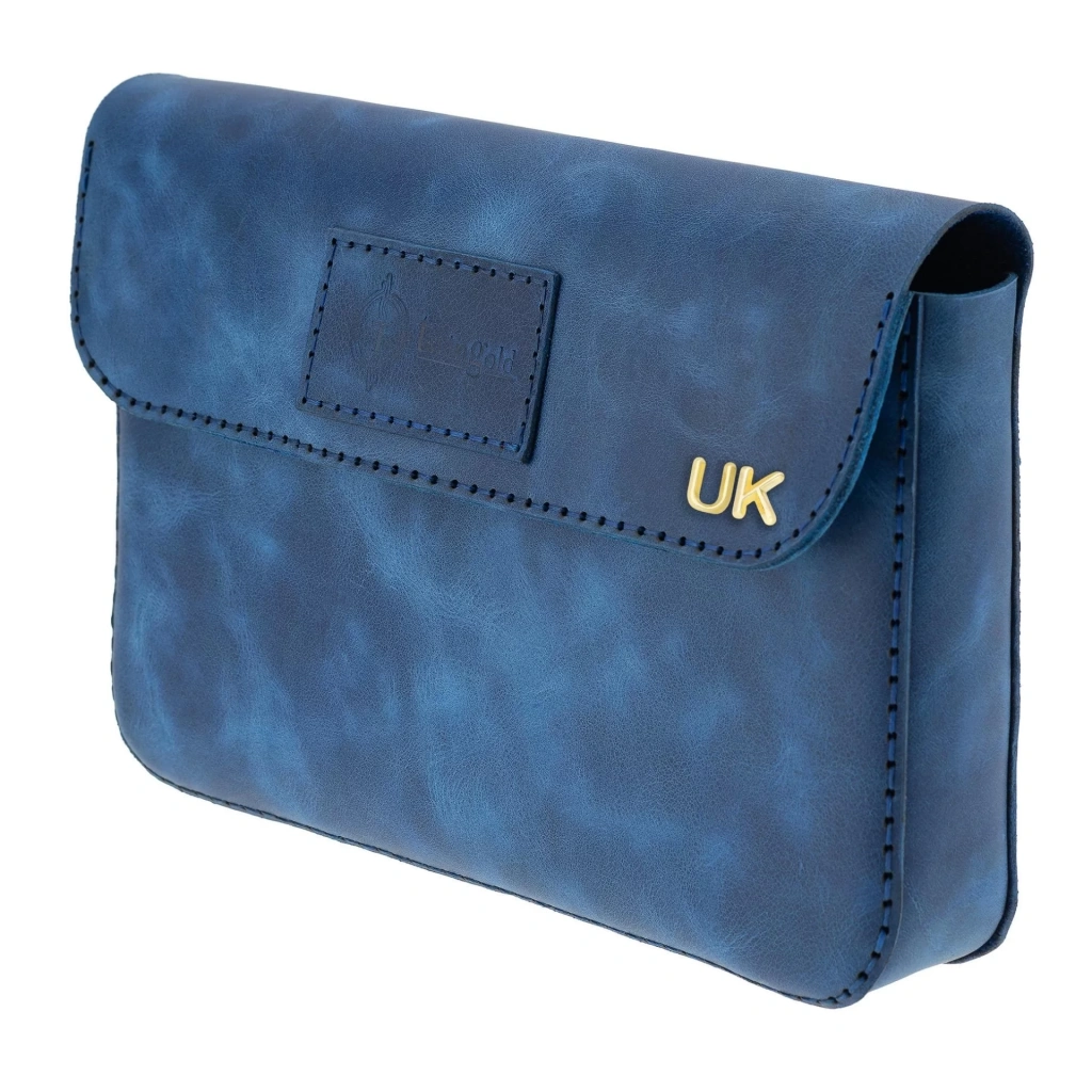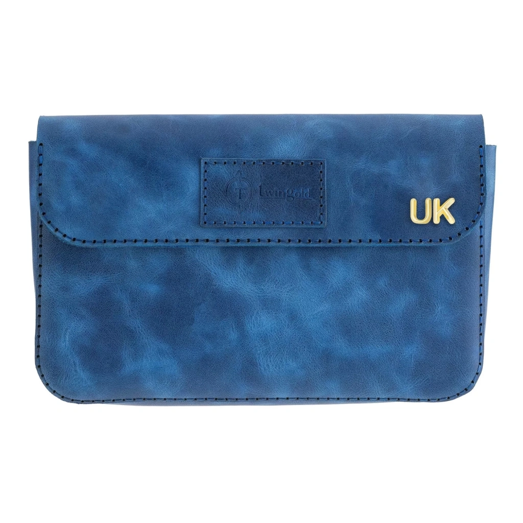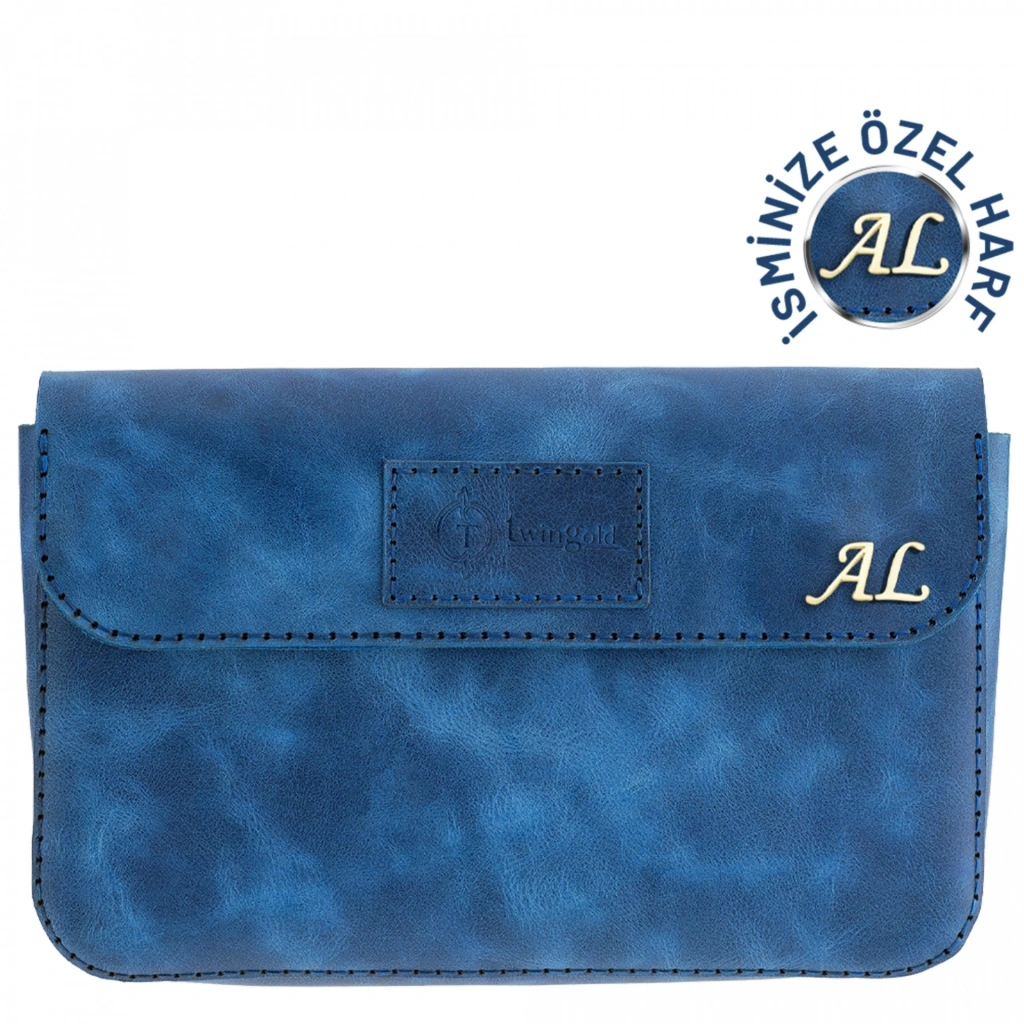 İsme Özel Çıtçıtlı Küçük El Çantası - %100 Rainbow Deri - AC14001 - Saks Mavisi