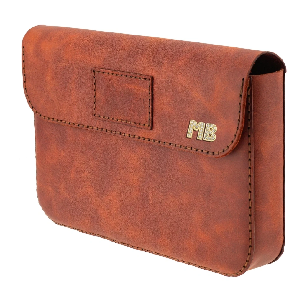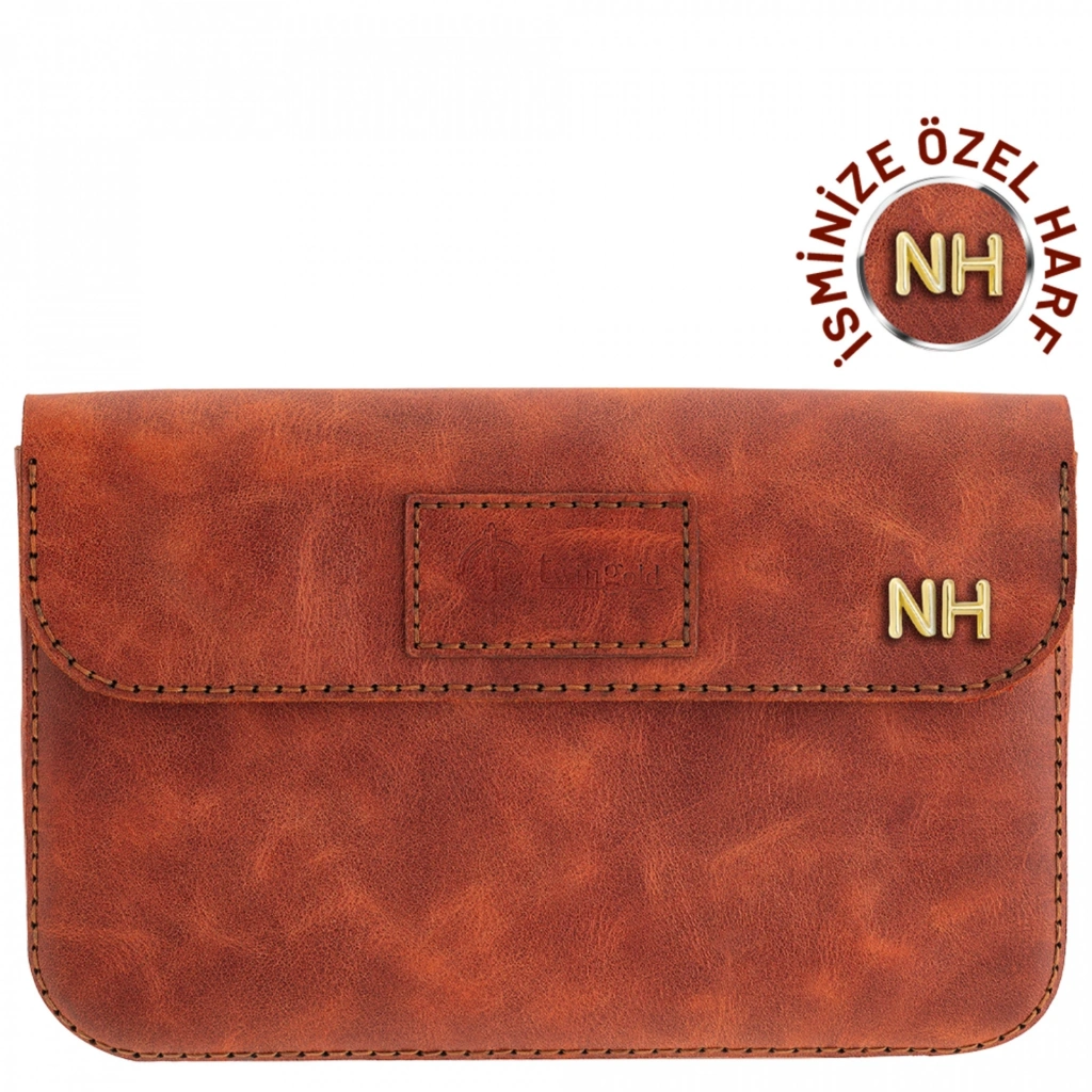 İsme Özel Çıtçıtlı Küçük El Çantası - %100 Rainbow Deri - AC14001 - Tobacco