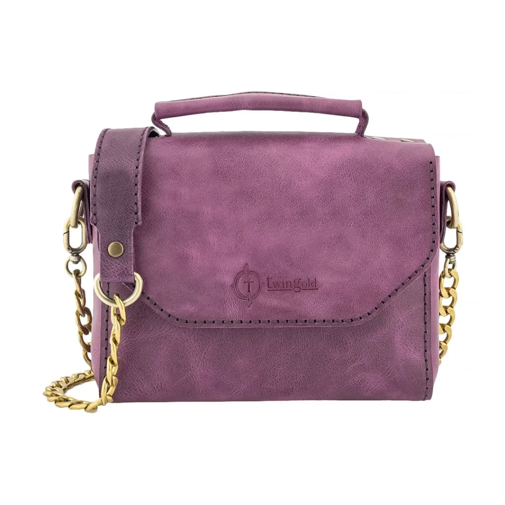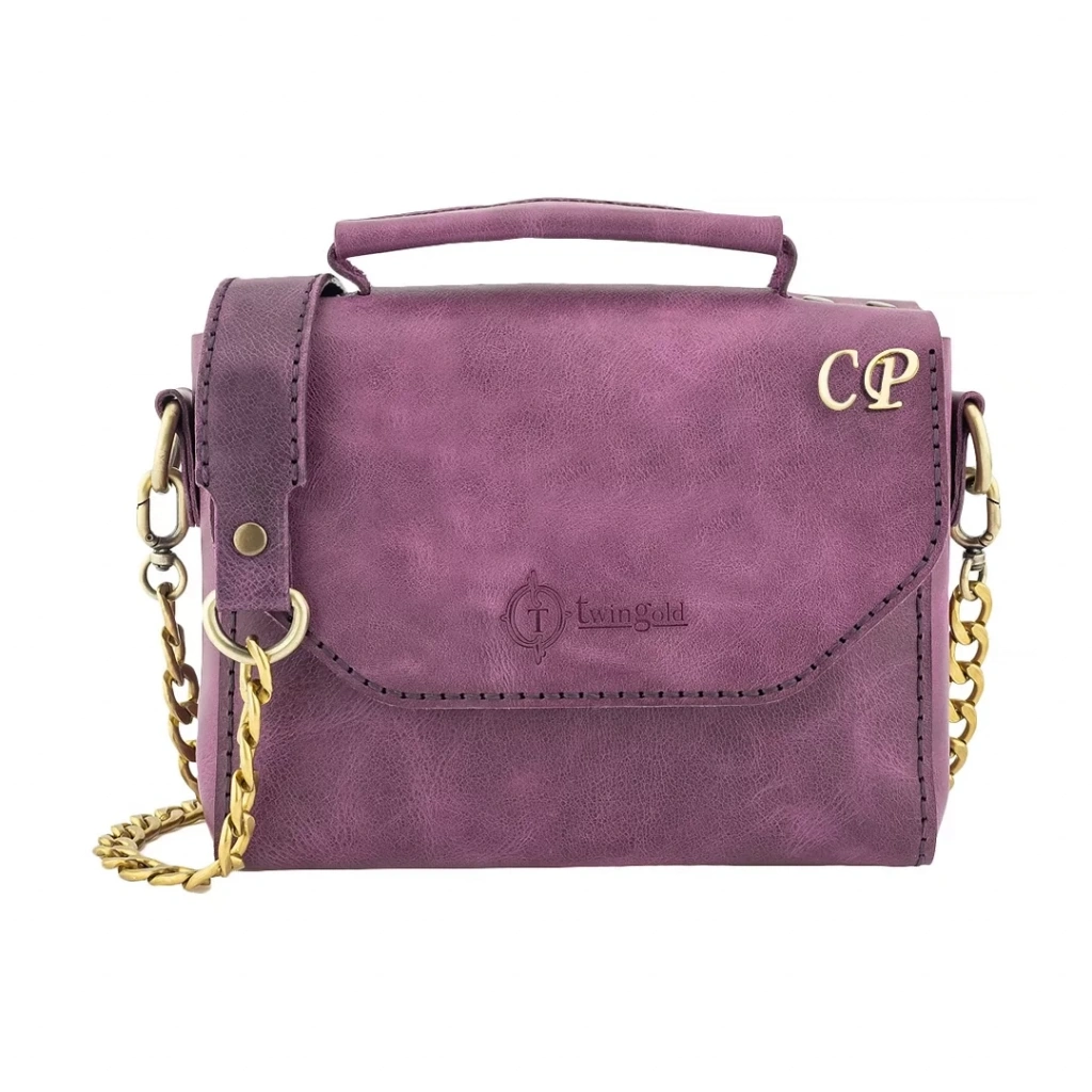 İsme Özel Çıtçıtlı Zincirli Küçük Boy El Omuz Çantası - %100 Deri - AC03001 - Mor