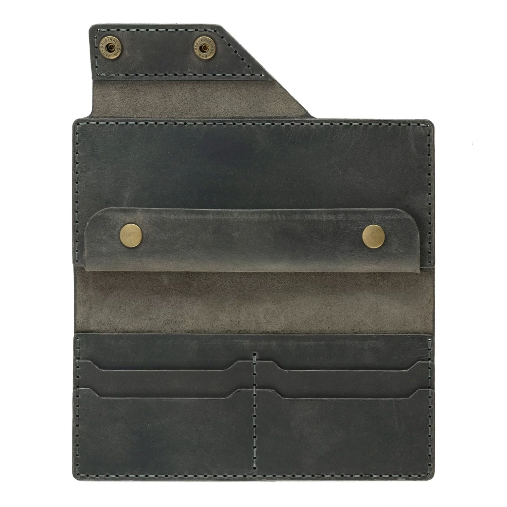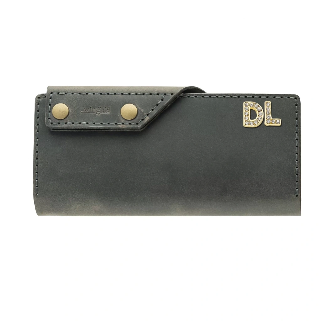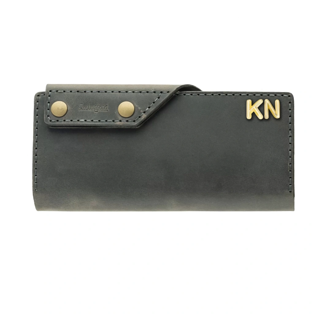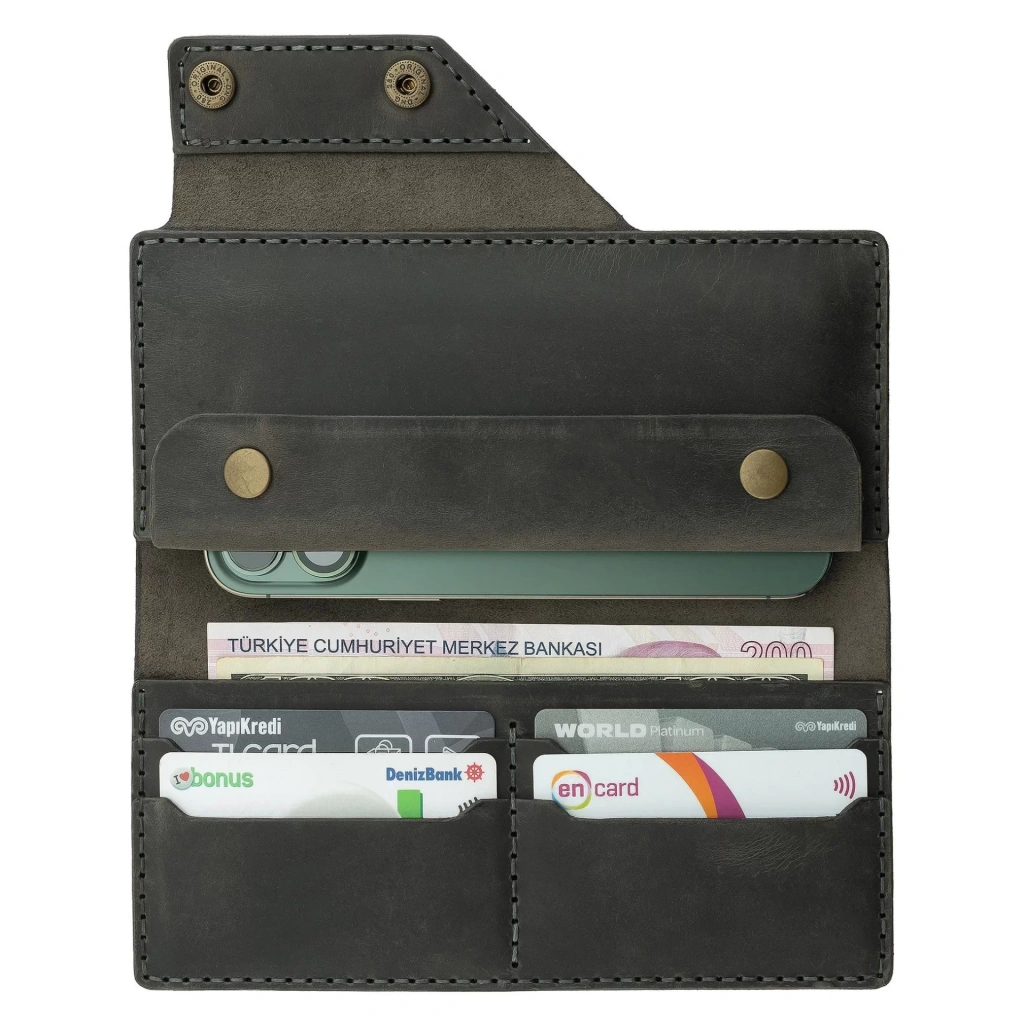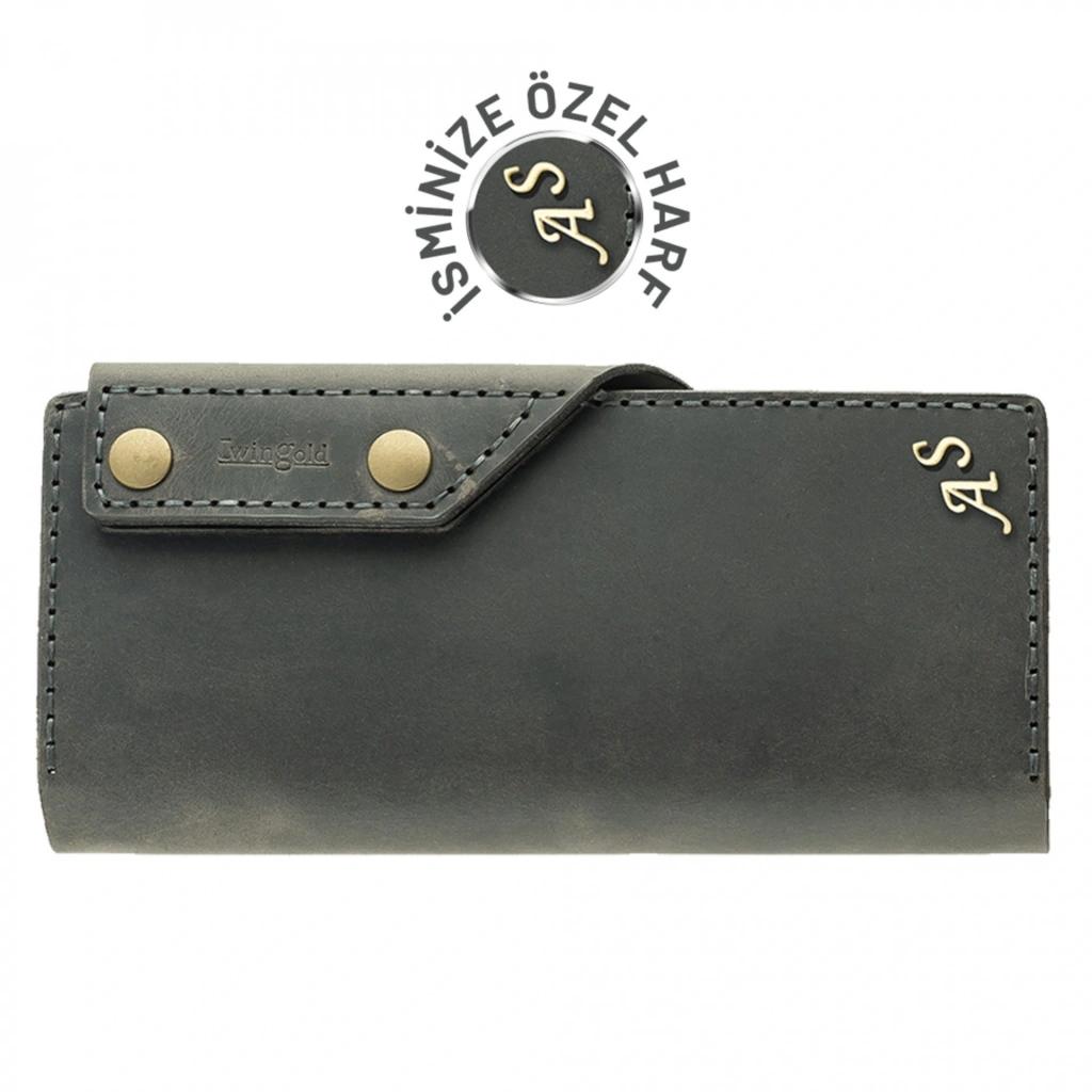 İsme Özel Dikey Çıtçıtlı Uzun Cüzdan - %100 Crazy Deri - A010002 - Antrasit