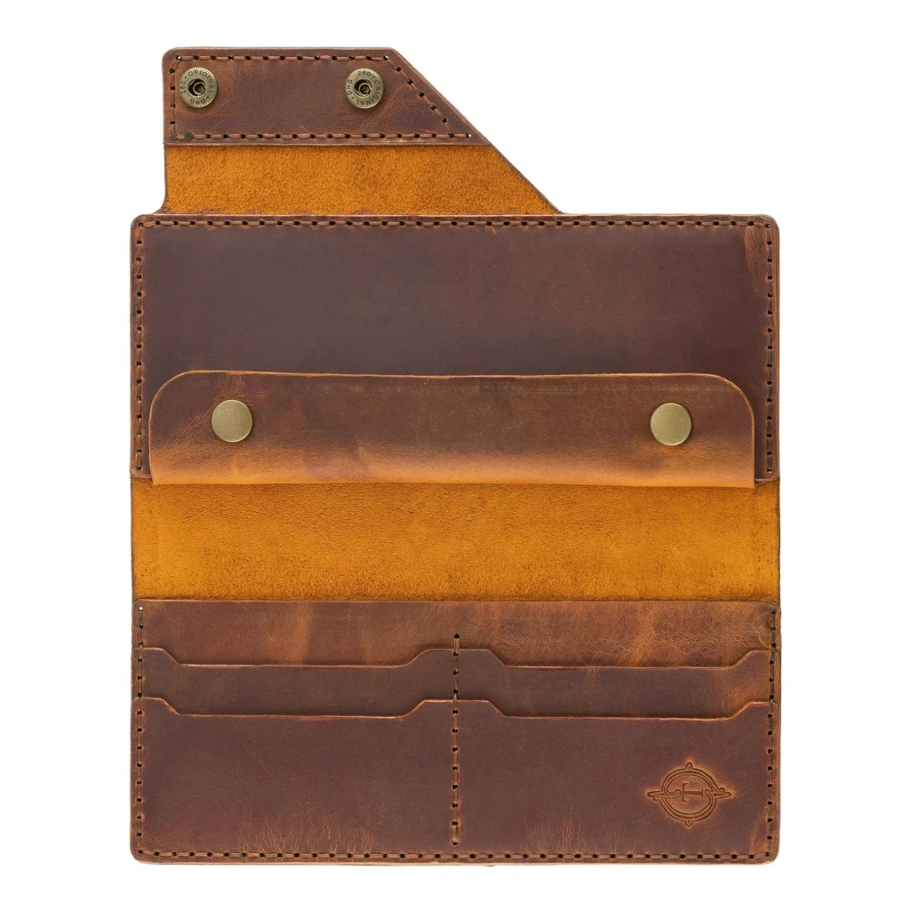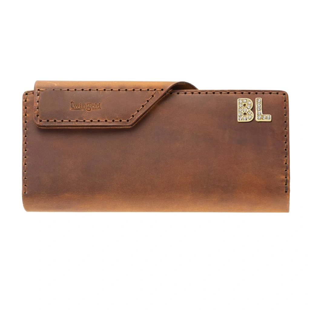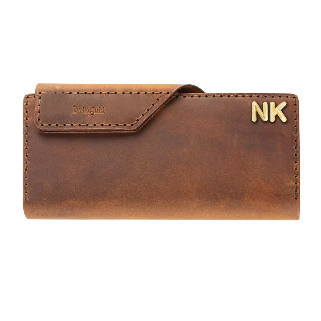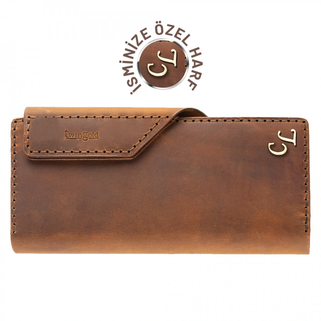 İsme Özel Dikey Çıtçıtlı Uzun Cüzdan - %100 Crazy Deri - A010002 - Taba