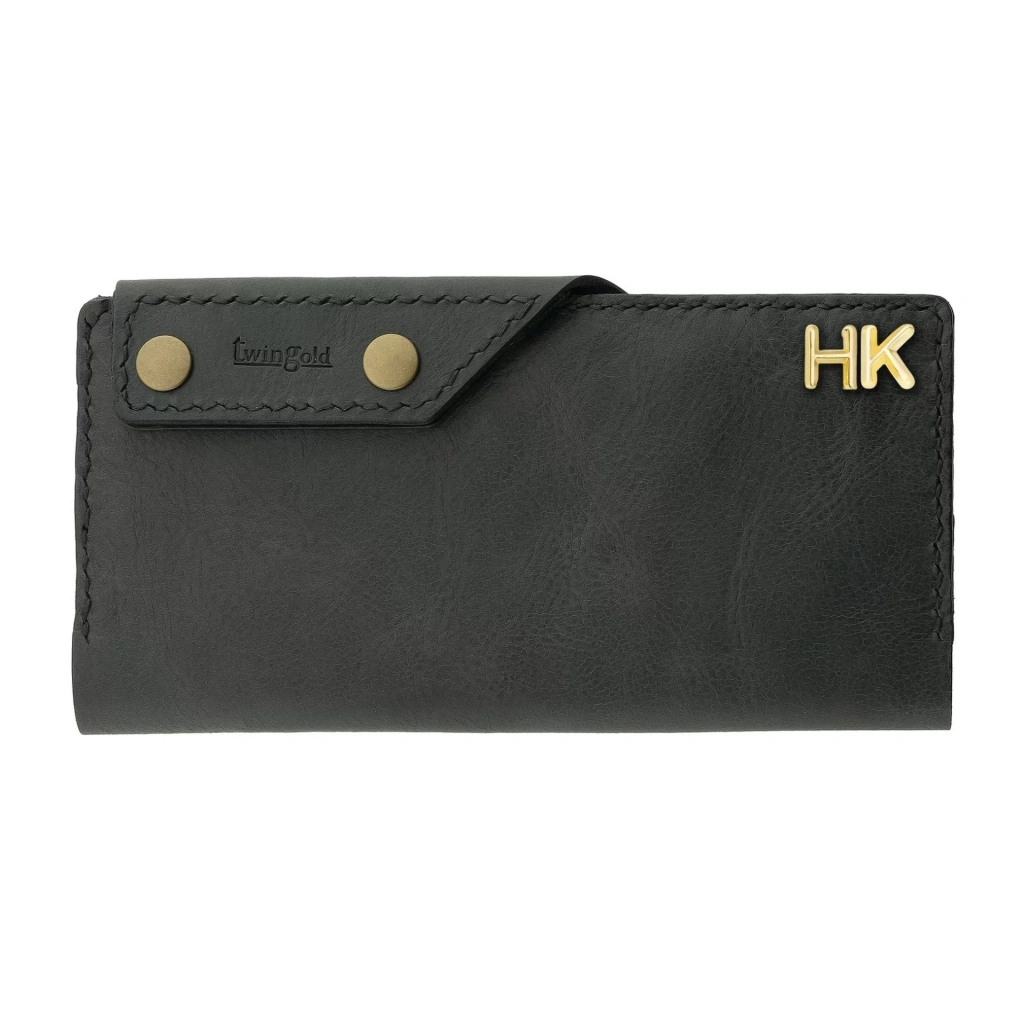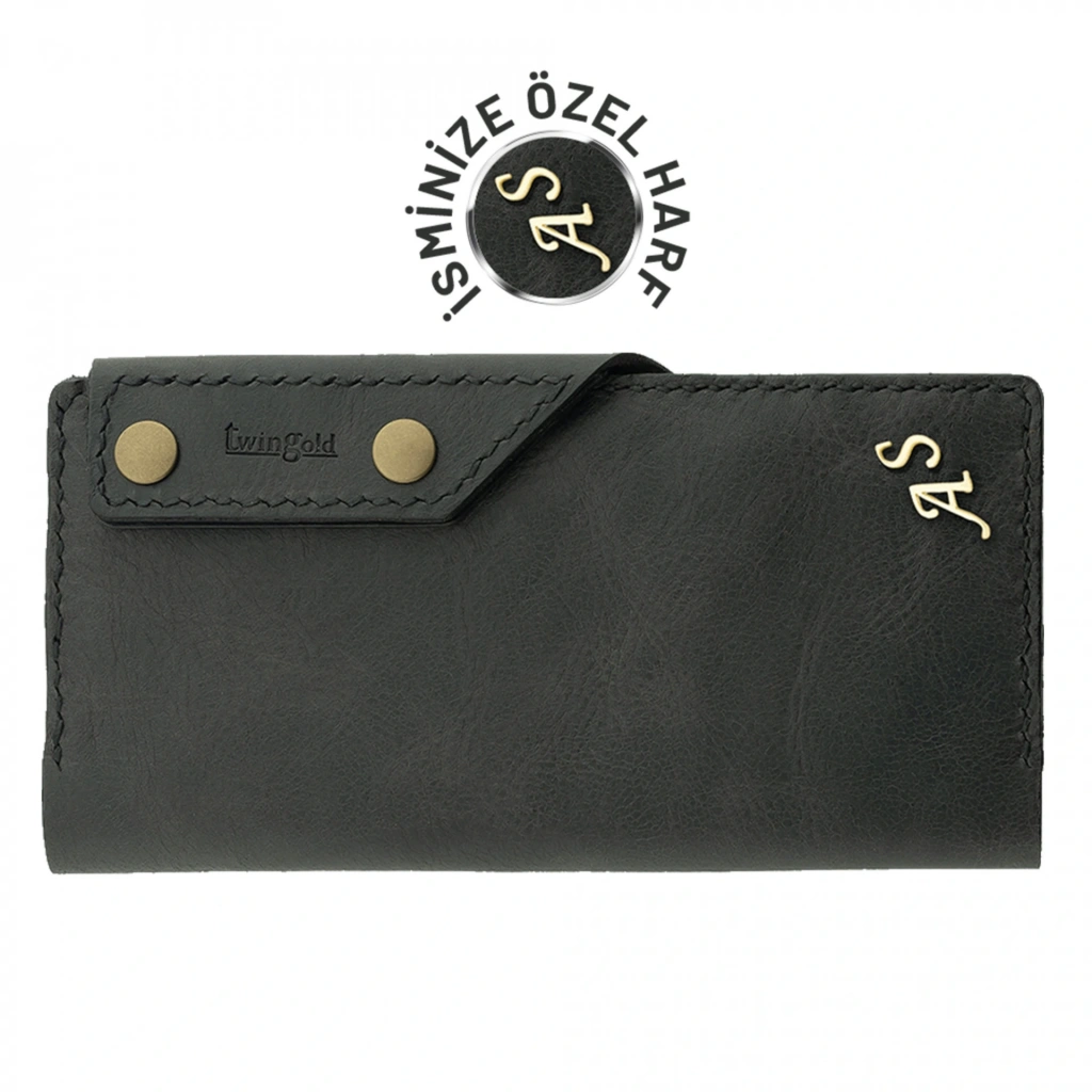İsme Özel Dikey Çıtçıtlı Uzun Cüzdan - %100 Rainbow Deri - A010006 - Antrasit