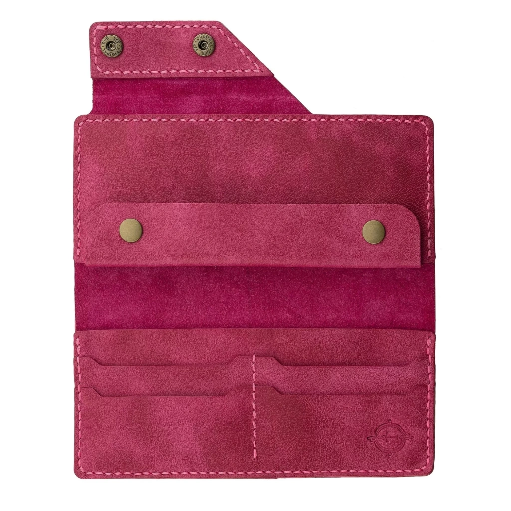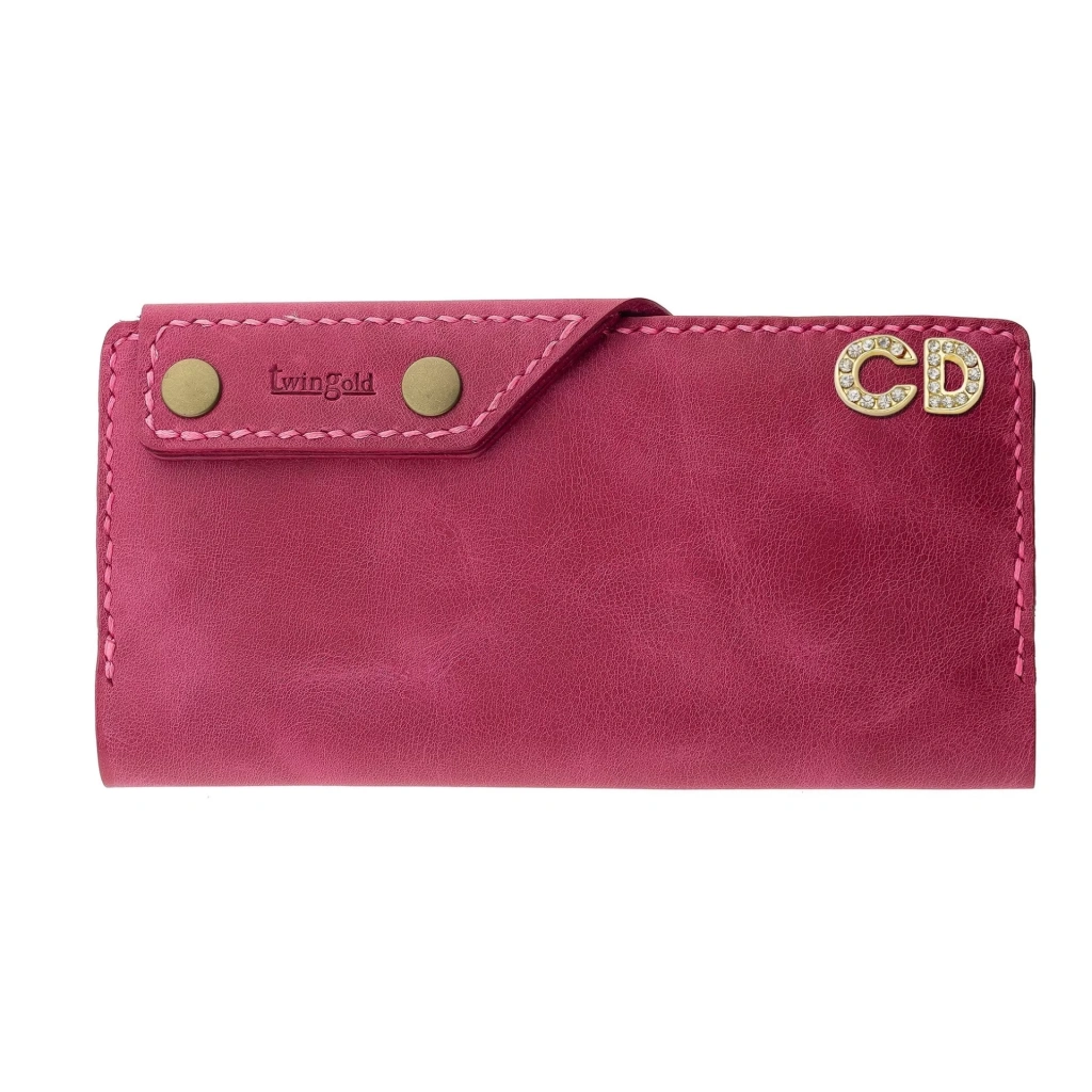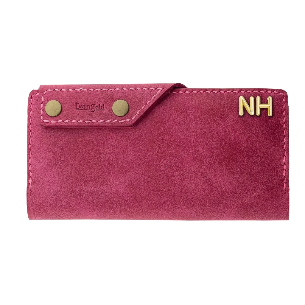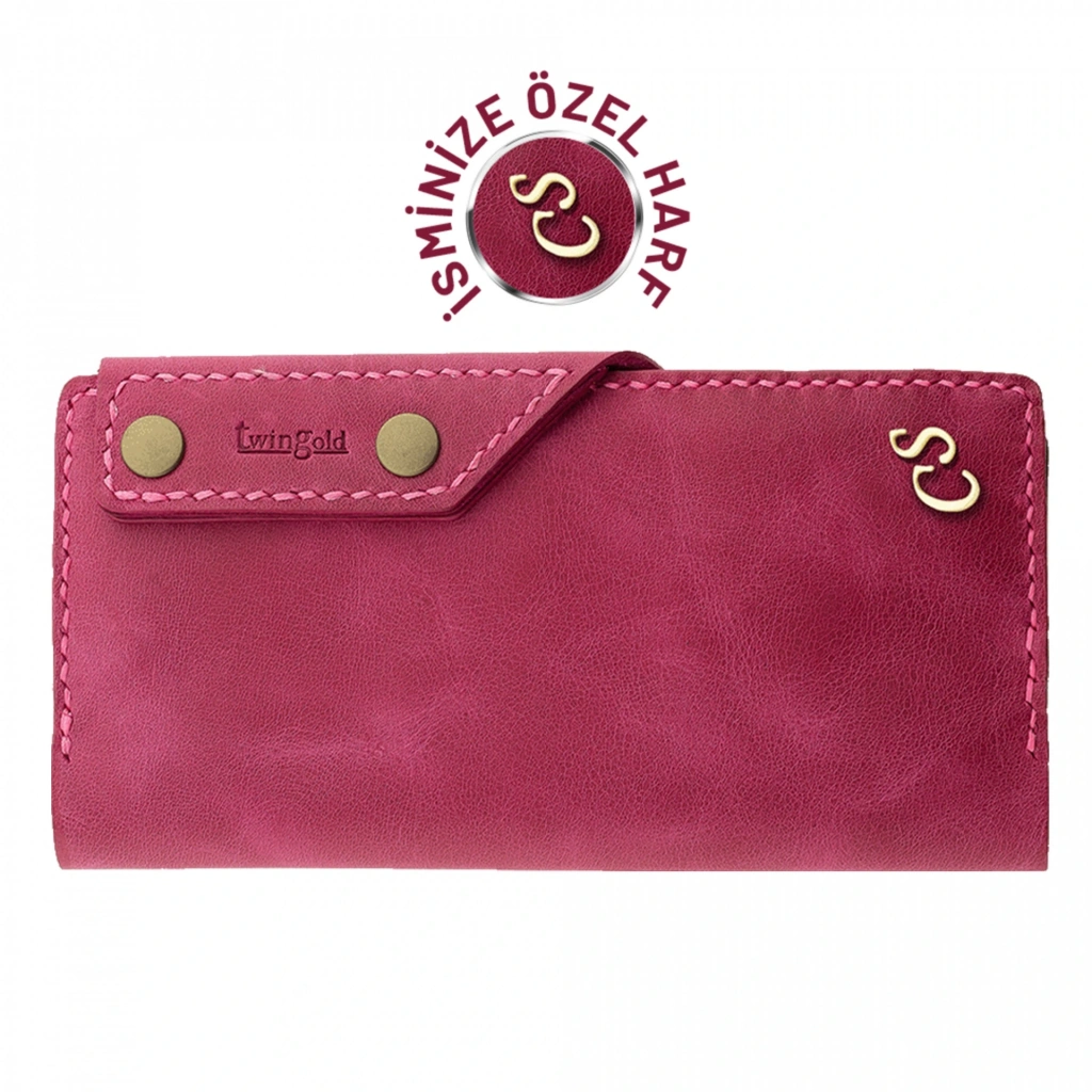 İsme Özel Dikey Çıtçıtlı Uzun Cüzdan - %100 Rainbow Deri - A010006 - Fuşya