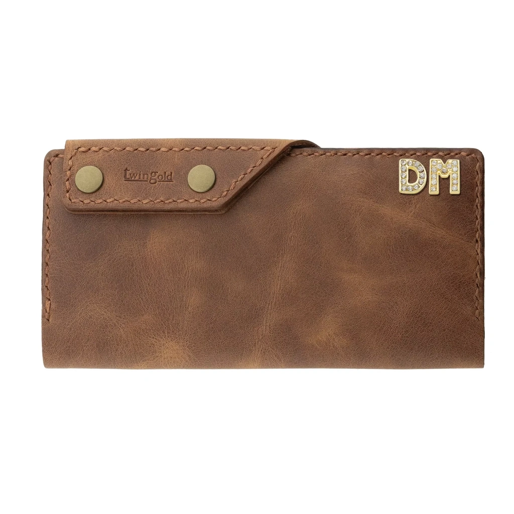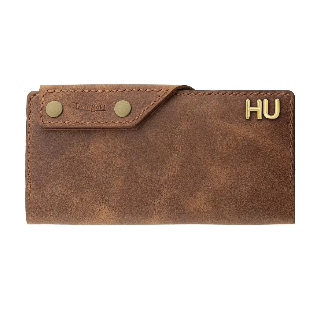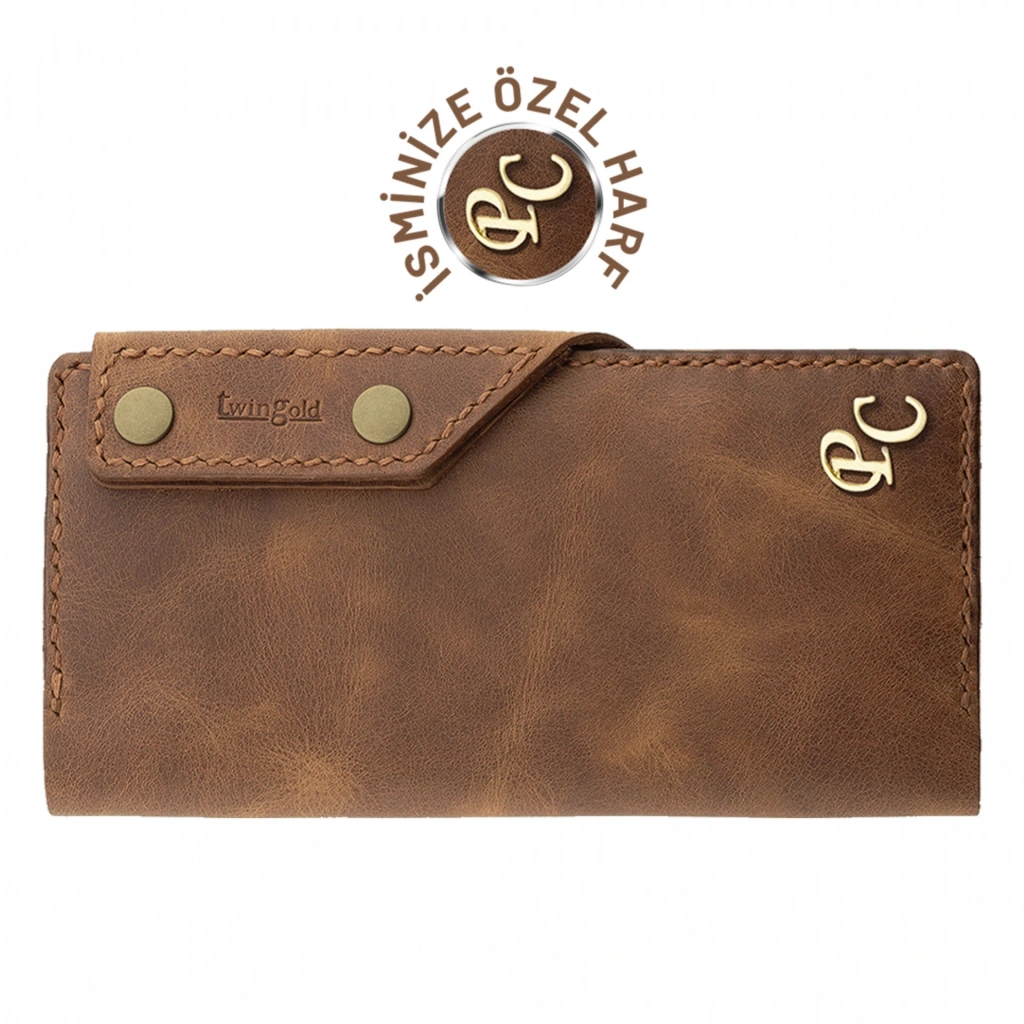 İsme Özel Dikey Çıtçıtlı Uzun Cüzdan - %100 Rainbow Deri - A010006 - Kahverengi