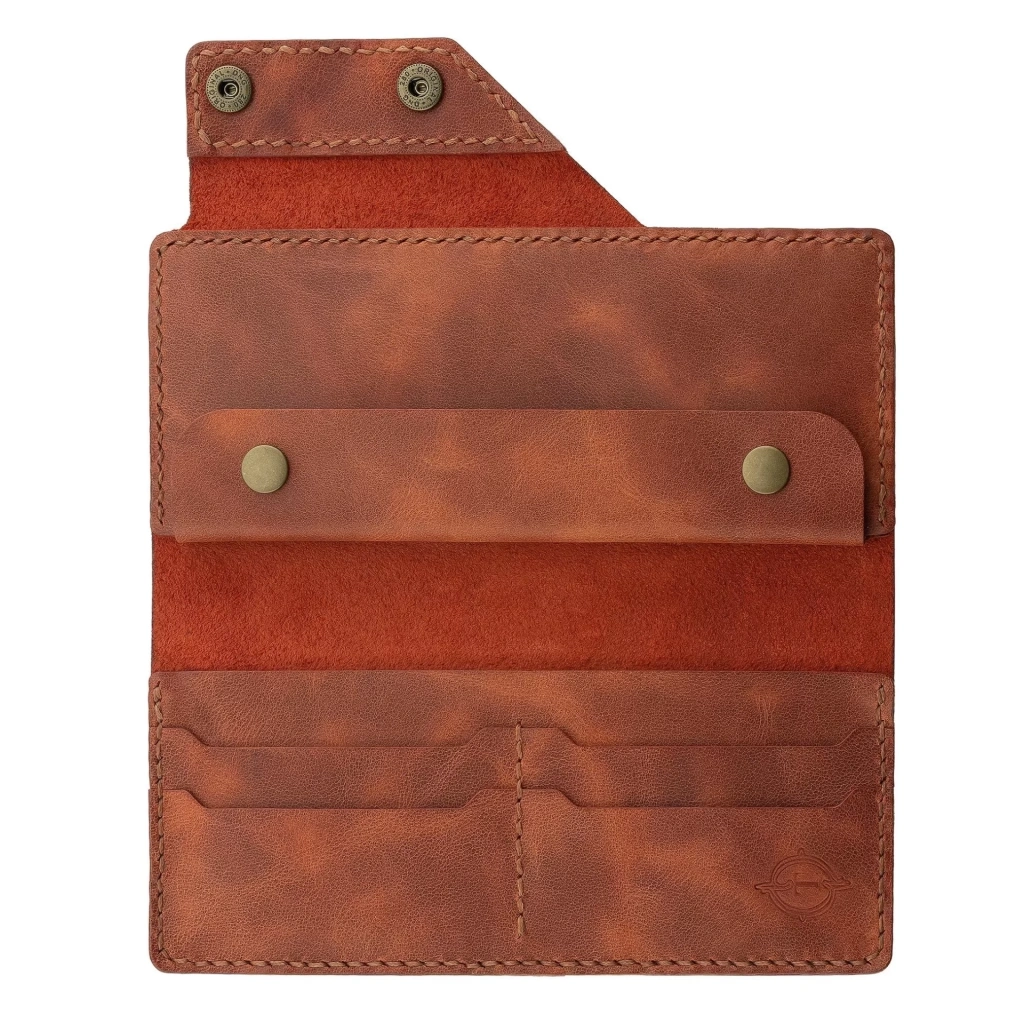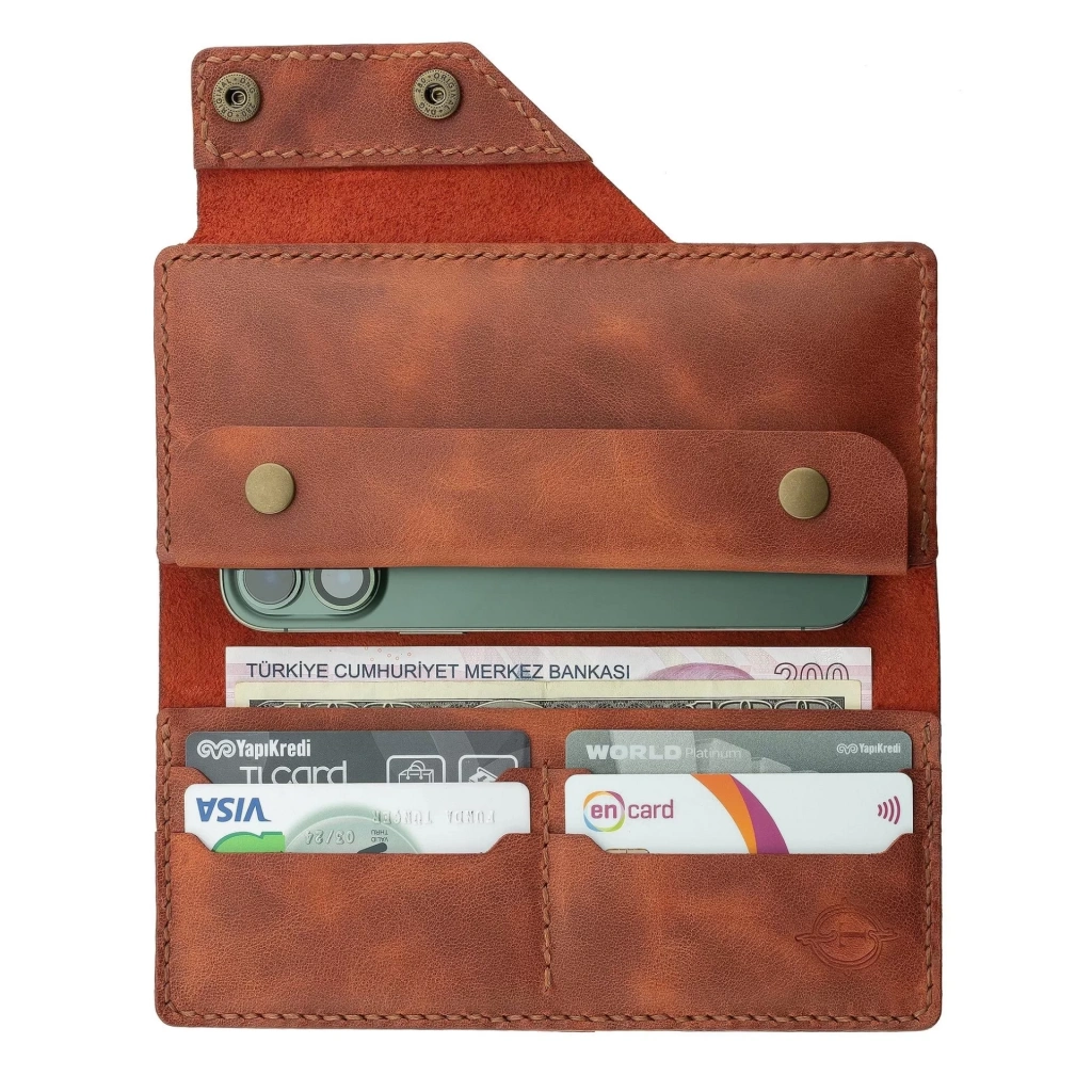İsme Özel Dikey Çıtçıtlı Uzun Cüzdan - %100 Rainbow Deri - A010006 - Tobacco