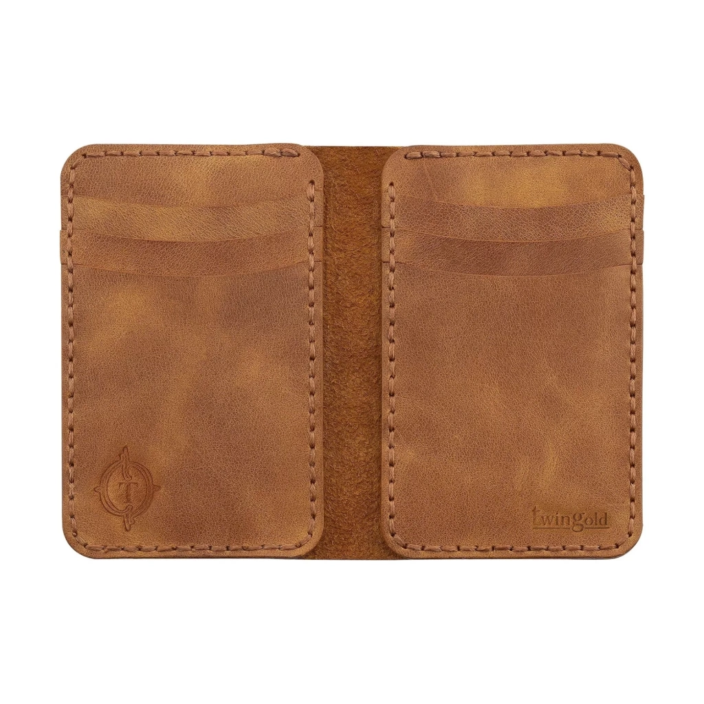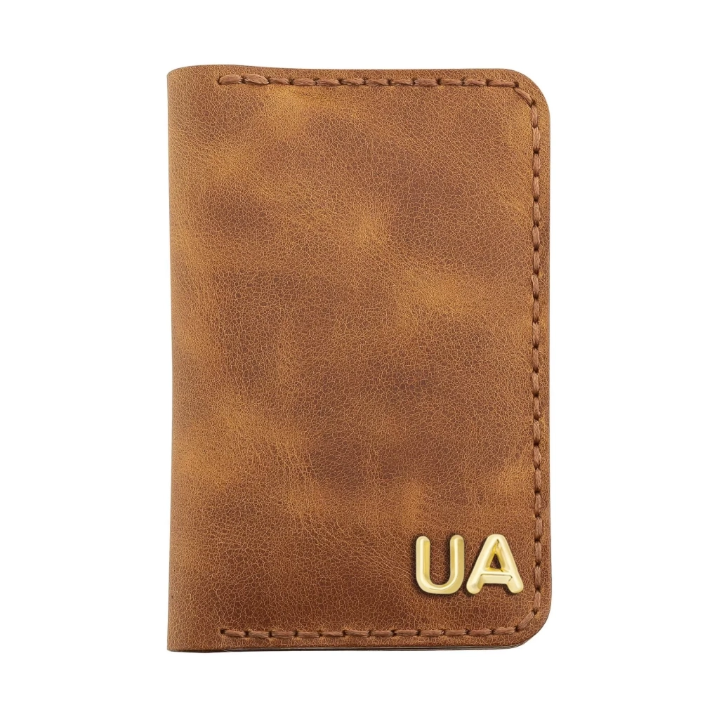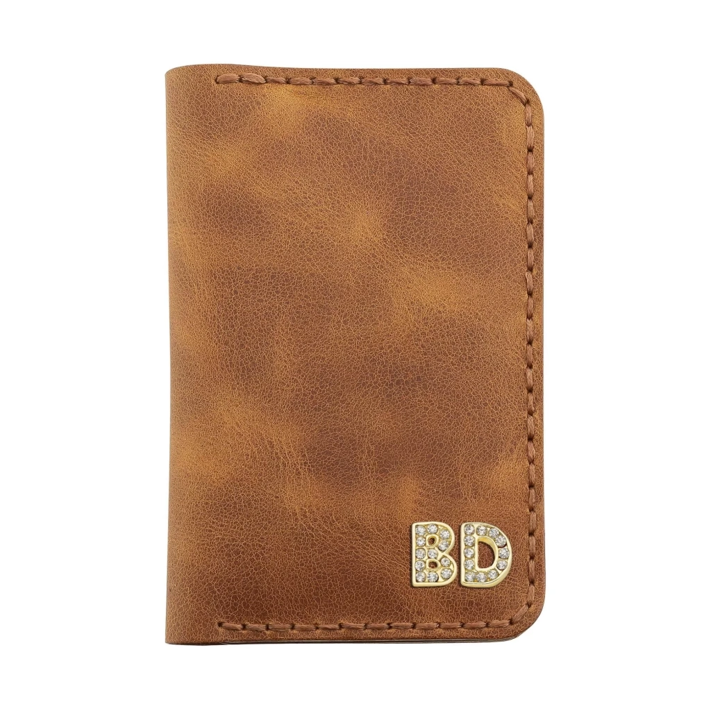 İsme Özel Dikey Mini Cüzdan - %100 Rainbow Deri - A010005 - Camel