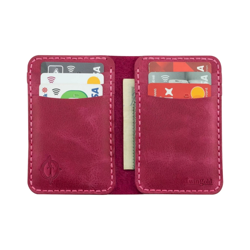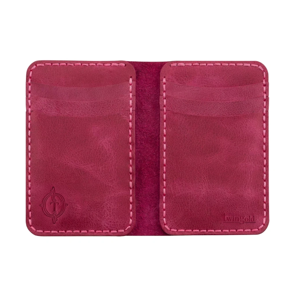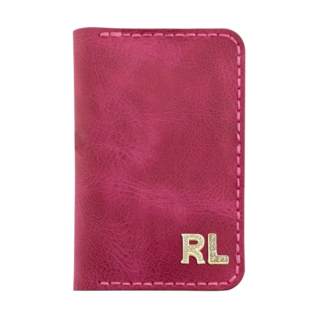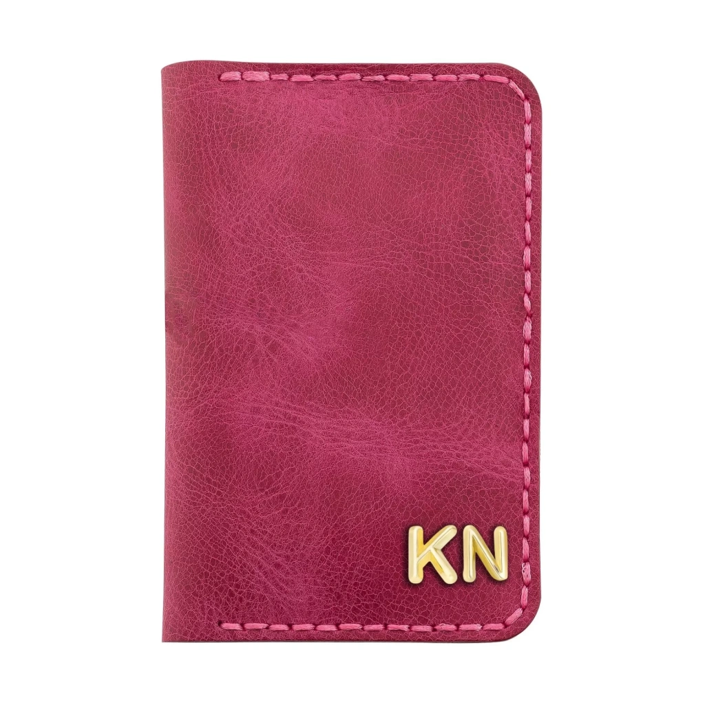 İsme Özel Dikey Mini Cüzdan - %100 Rainbow Deri - A010005 - Fuşya