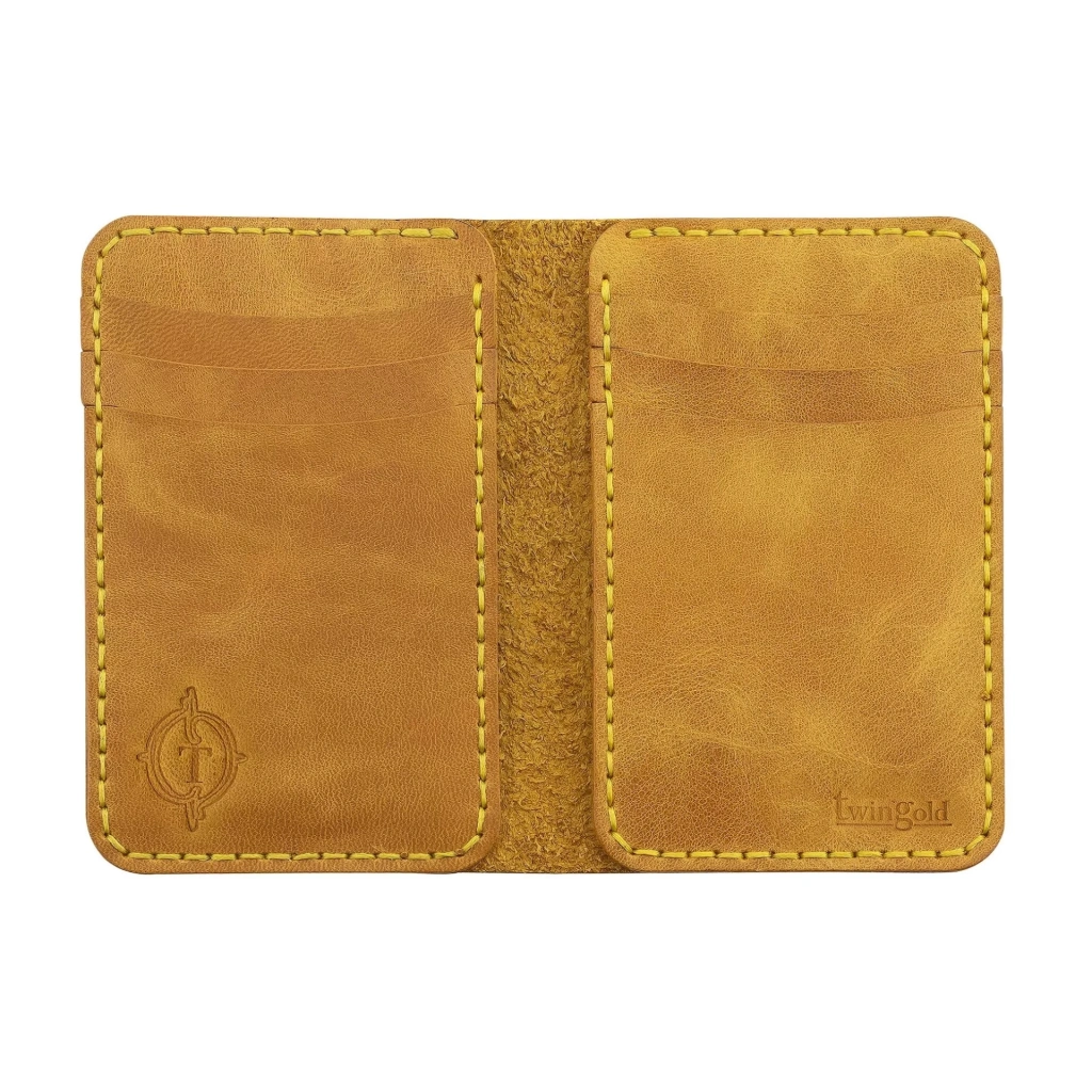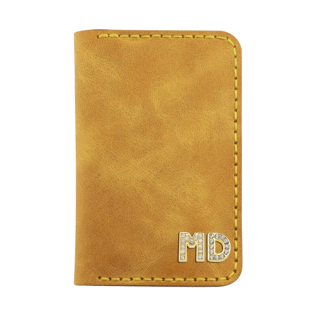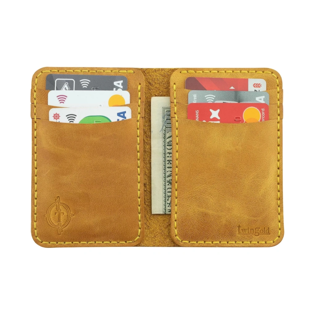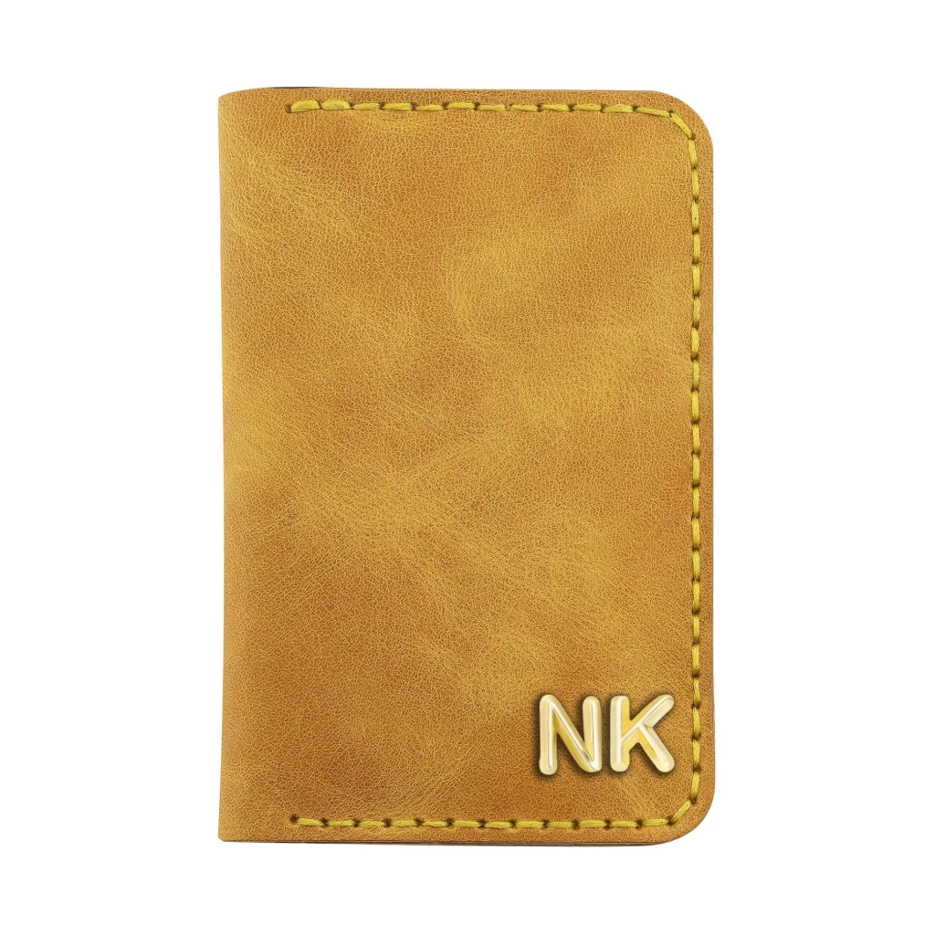 İsme Özel Dikey Mini Cüzdan - %100 Rainbow Deri - A010005 - Hardal Sarısı