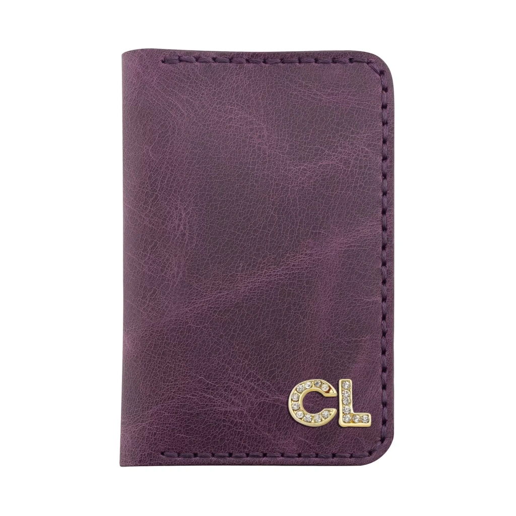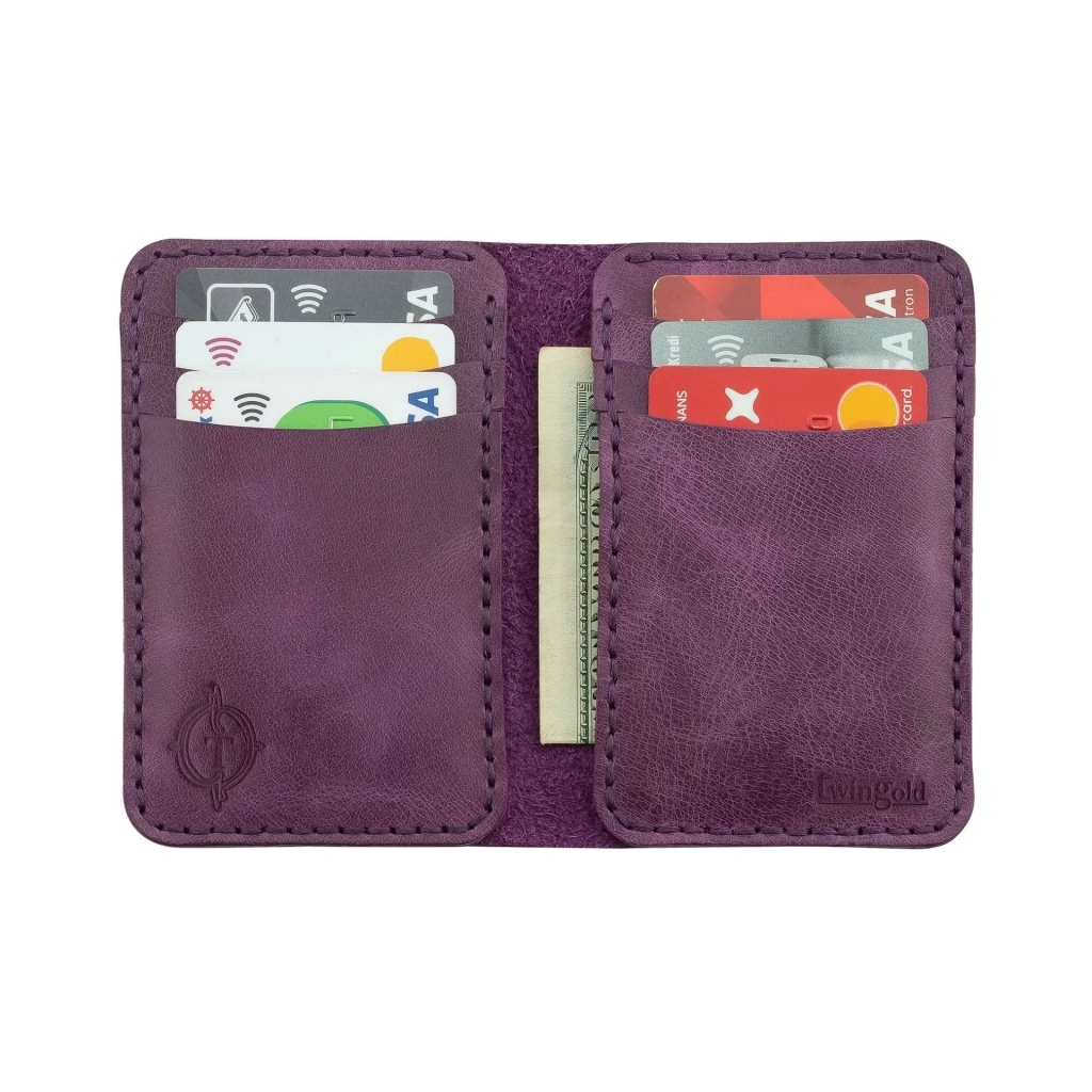İsme Özel Dikey Mini Cüzdan - %100 Rainbow Deri - A010005 - Mor