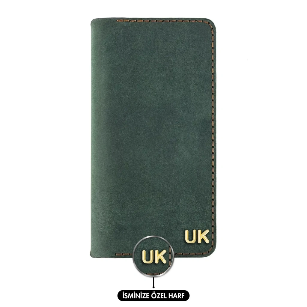 İsme Özel Dikey Uzun Cüzdan - %100 Crazy Deri - A010003 - Haki