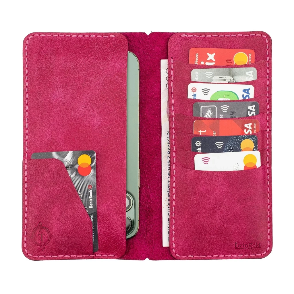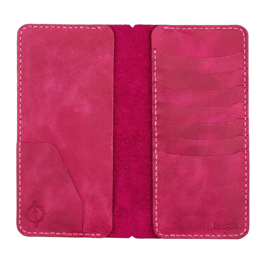 İsme Özel Dikey Uzun Cüzdan - %100 Rainbow Deri - A010007 - Fuşya