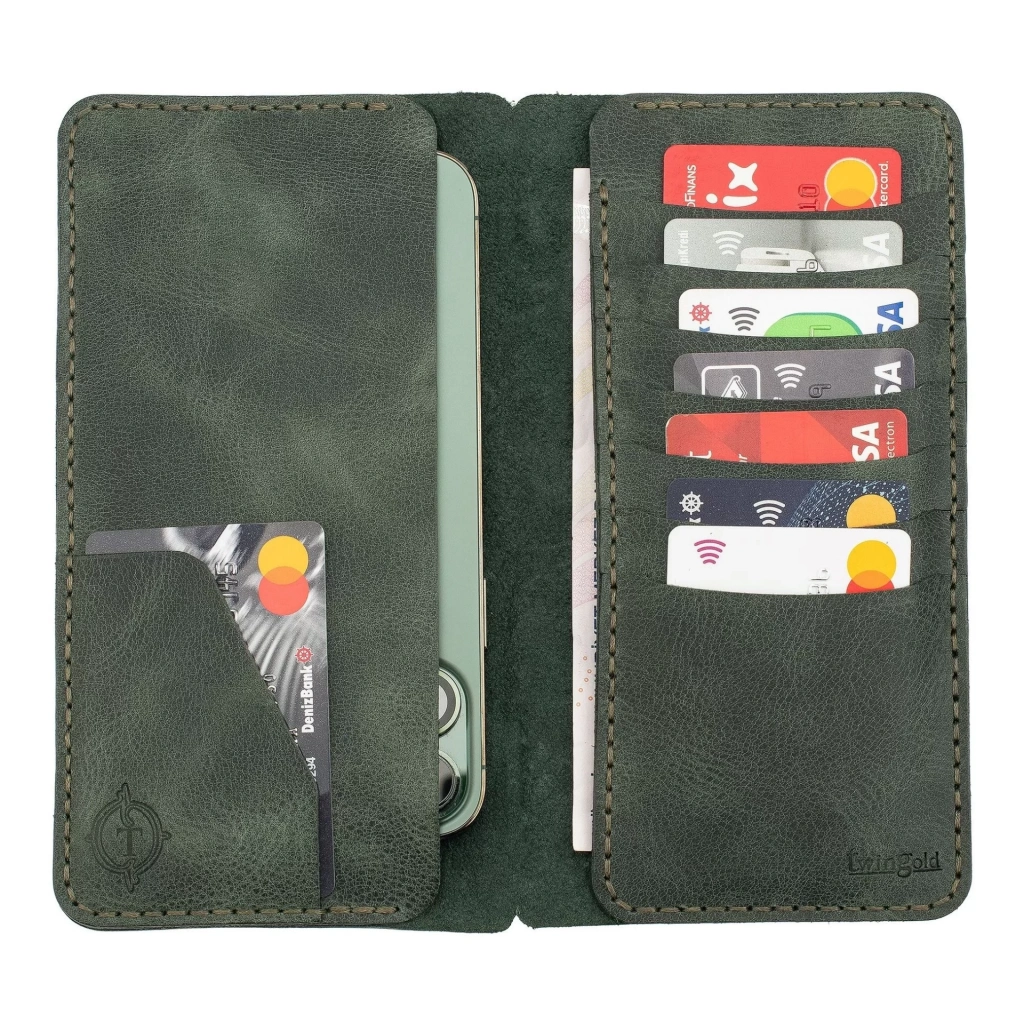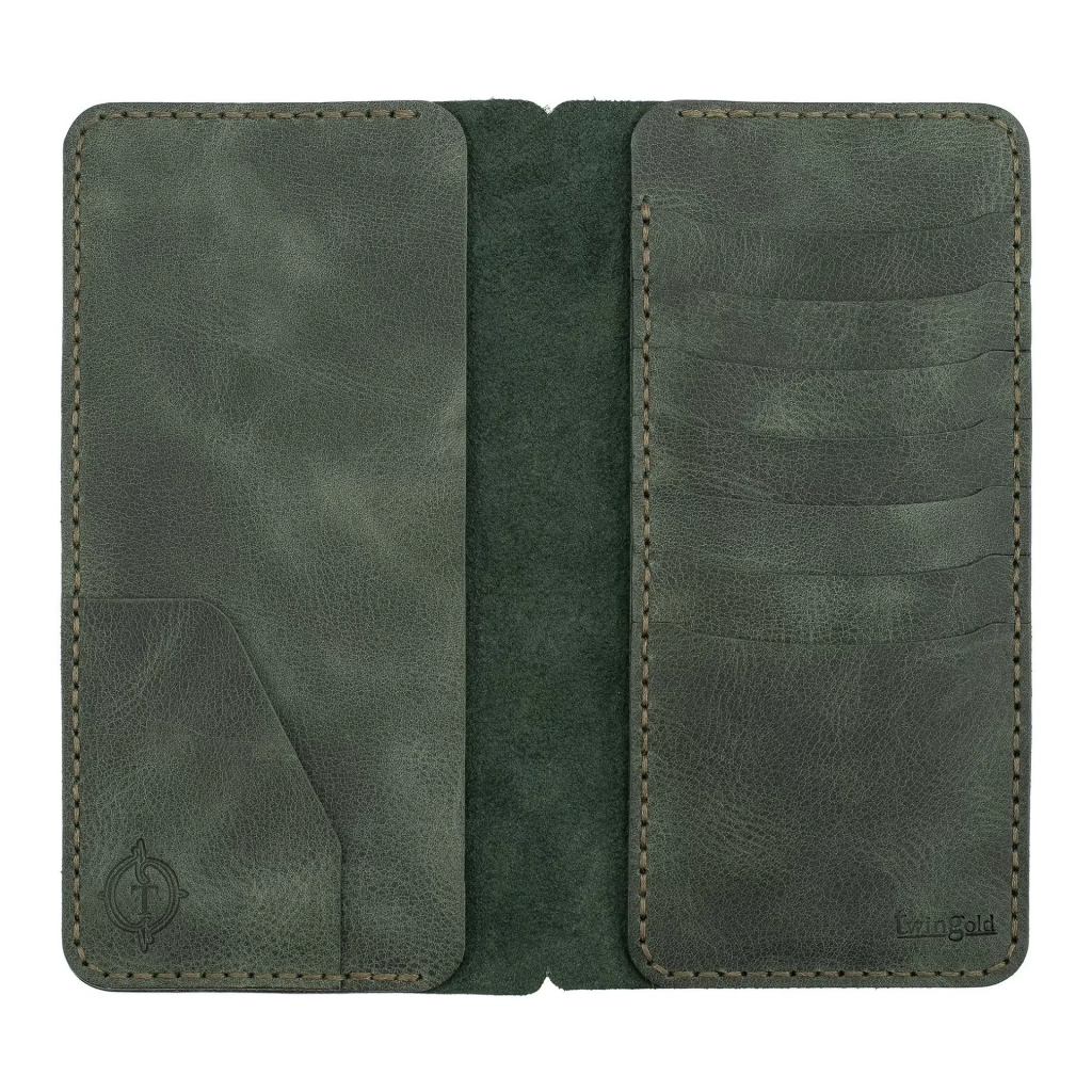 İsme Özel Dikey Uzun Cüzdan - %100 Rainbow Deri - A010007 - Haki