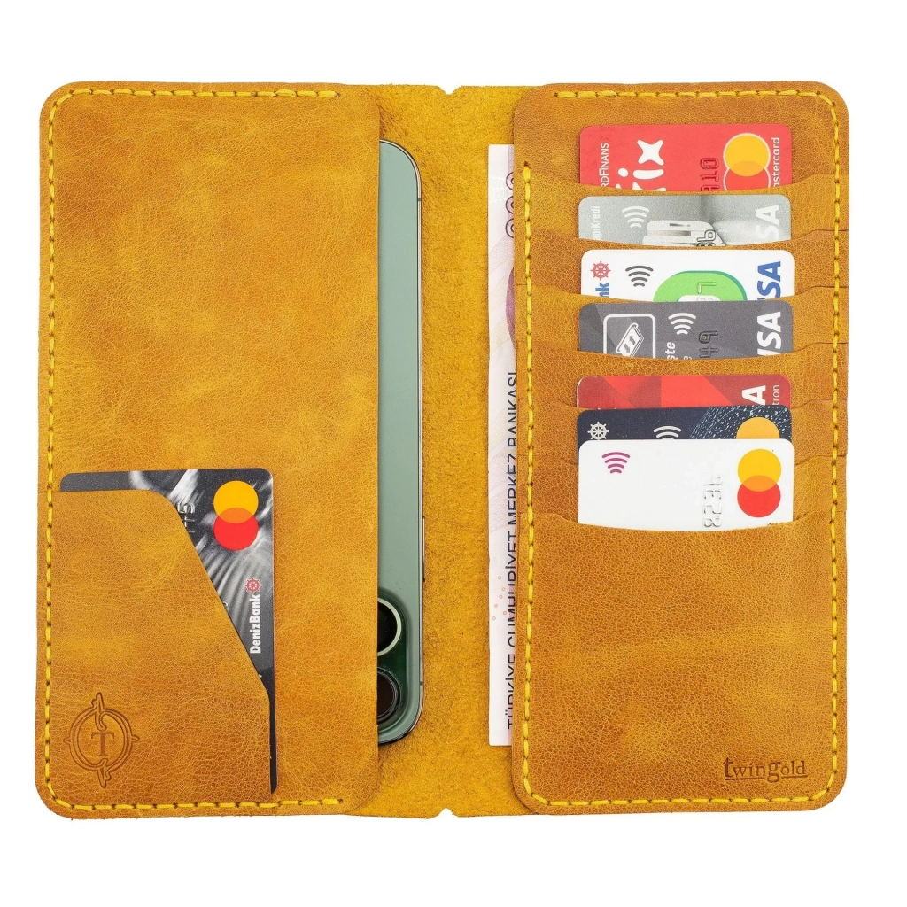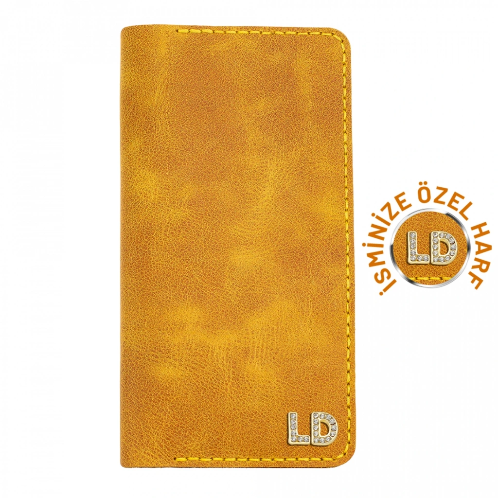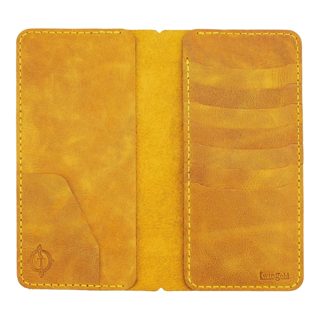 İsme Özel Dikey Uzun Cüzdan - %100 Rainbow Deri - A010007 - Hardal Sarısı
