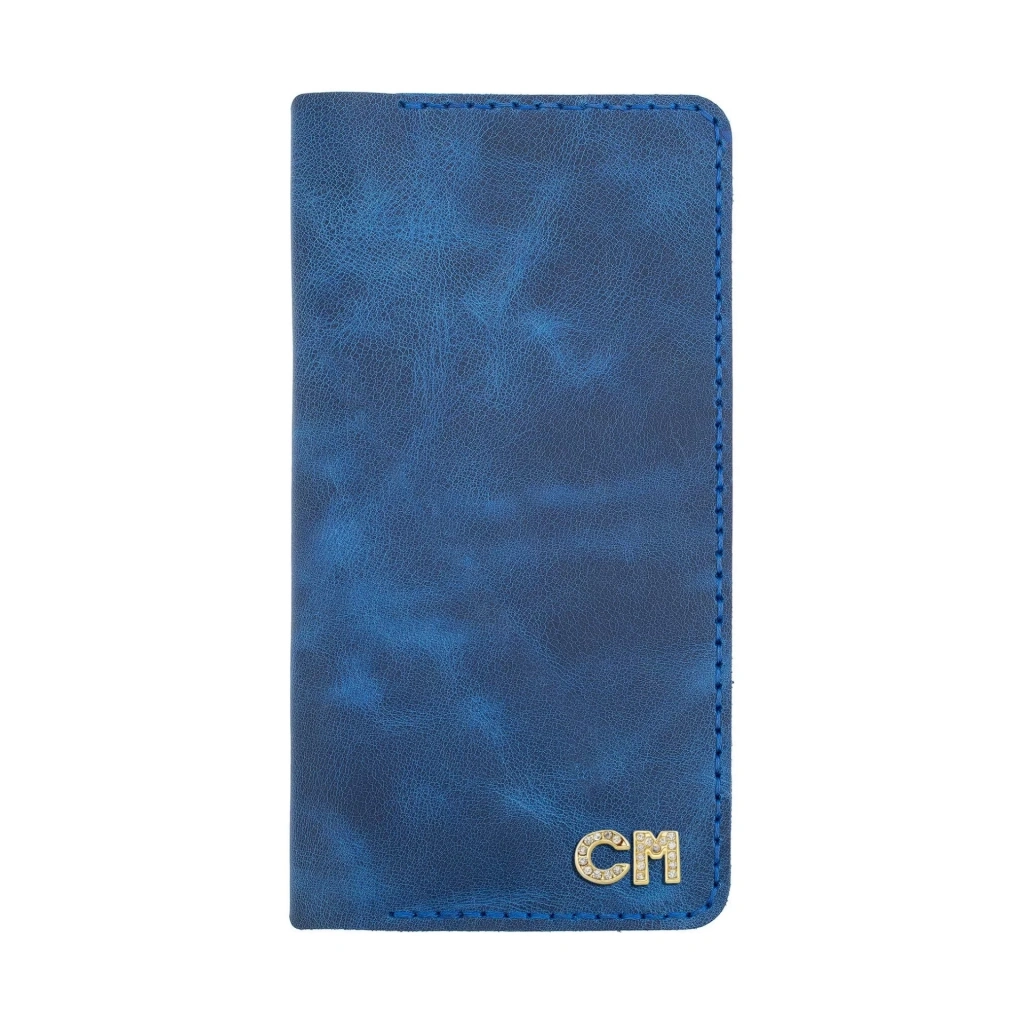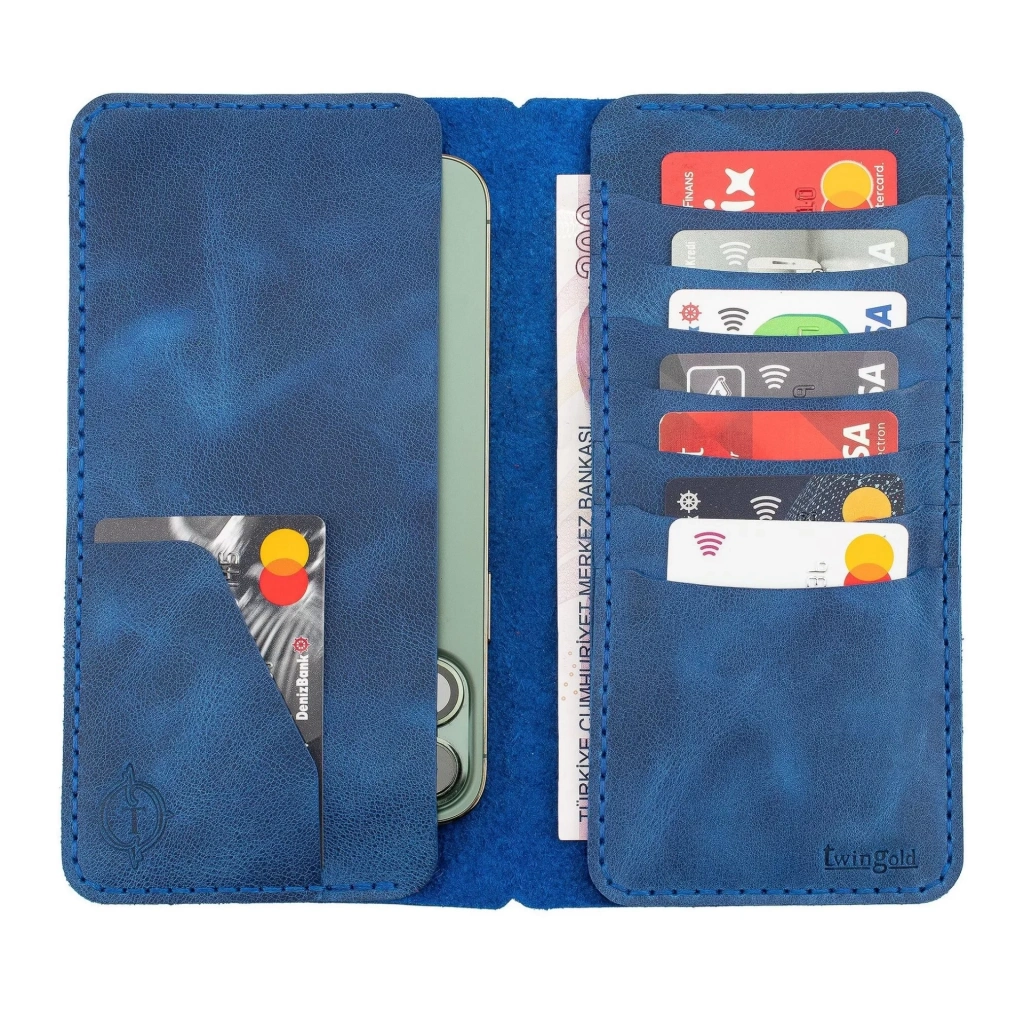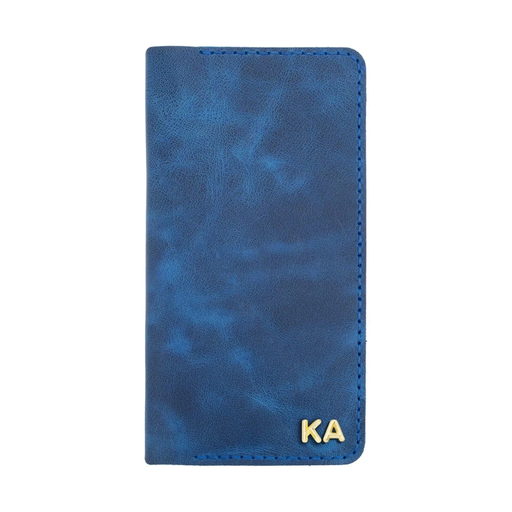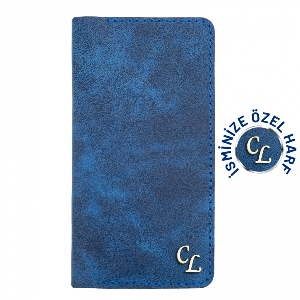 İsme Özel Dikey Uzun Cüzdan - %100 Rainbow Deri - A010007 - Saks Mavisi