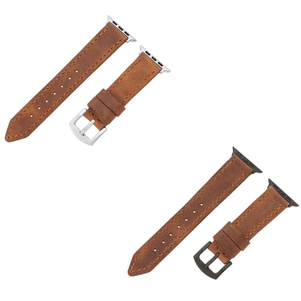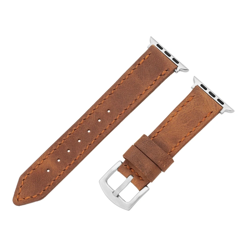 İsme Özel El Dikişli Apple Watch Saat Kordonu - %100 Çift Kat Deri - AG03001 - Tobacco