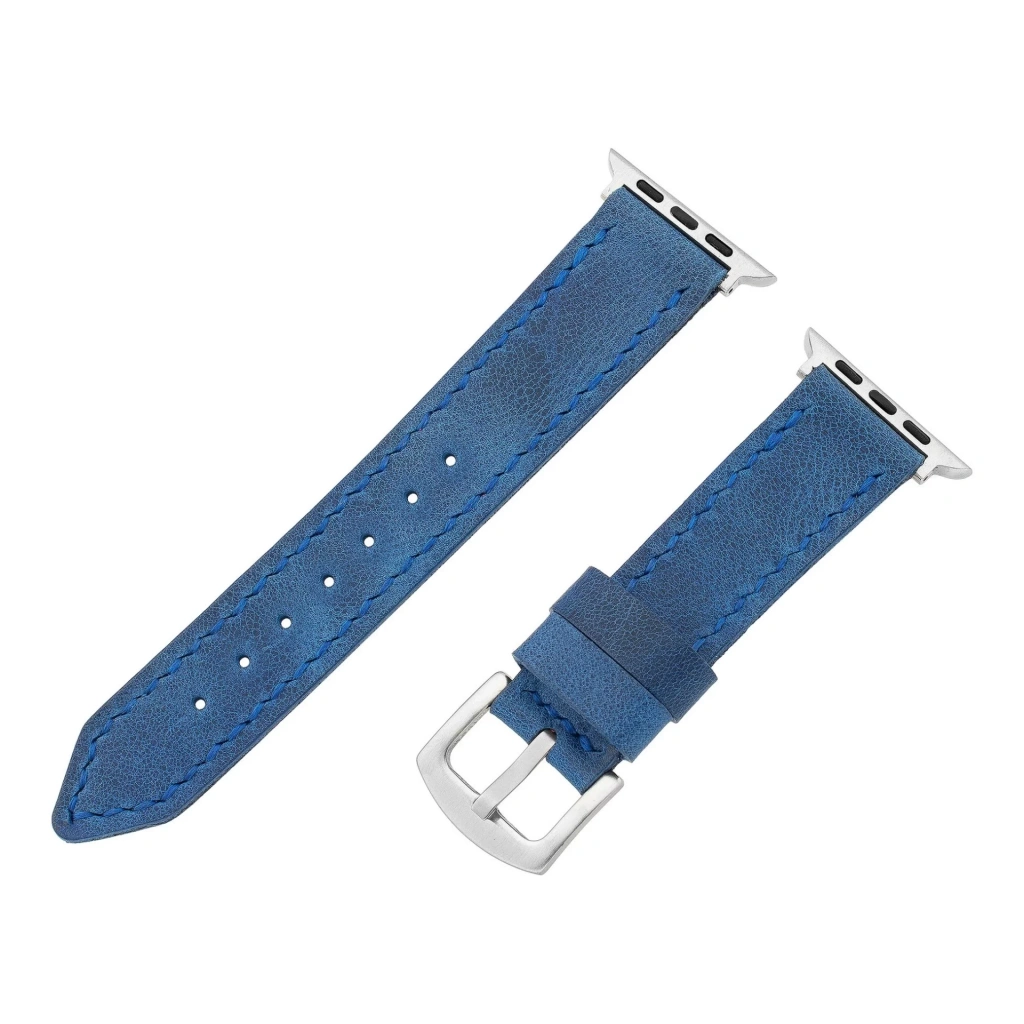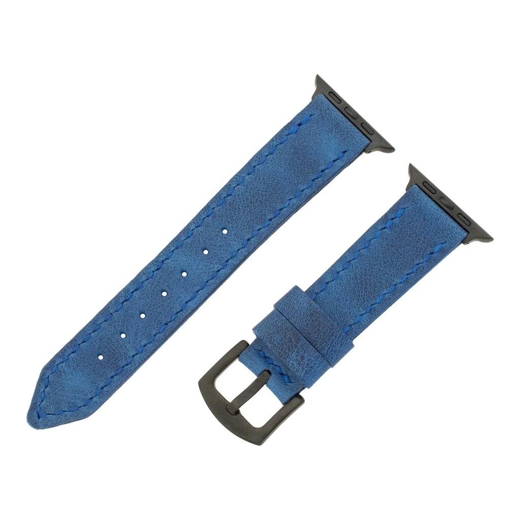 İsme Özel El Dikişli Apple Watch Saat Kordonu - %100 Çift Kat Deri - AG03001 - Saks Mavisi