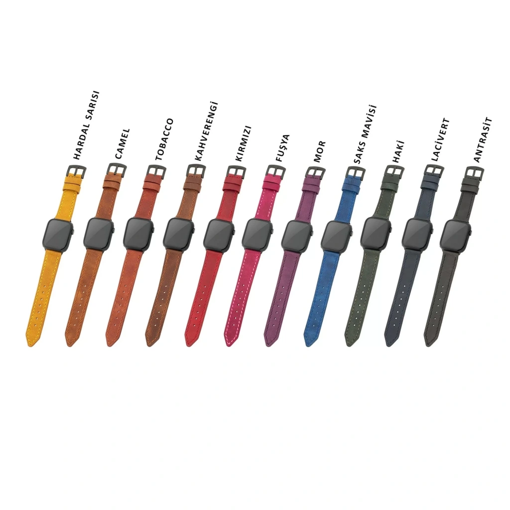 İsme Özel El Dikişli Apple Watch Saat Kordonu - %100 Çift Kat Deri - AG03001 - Tobacco