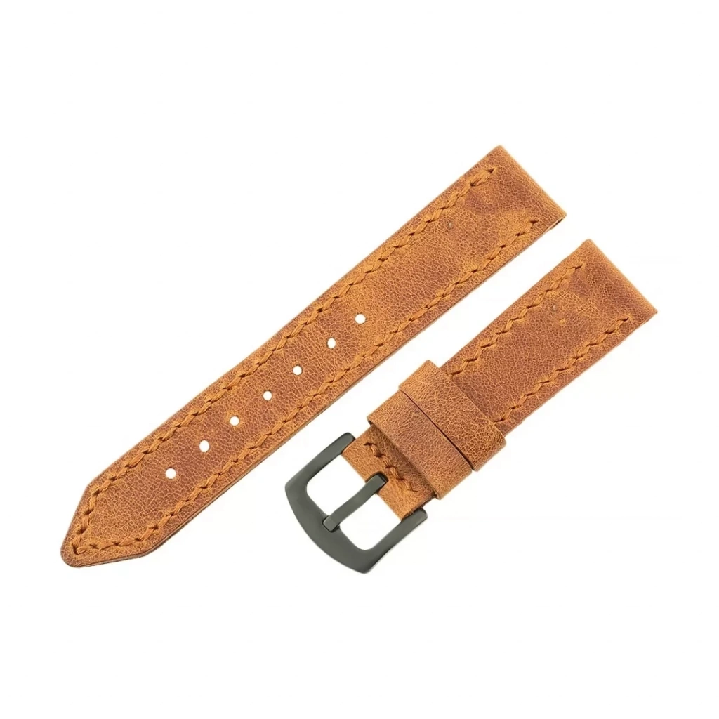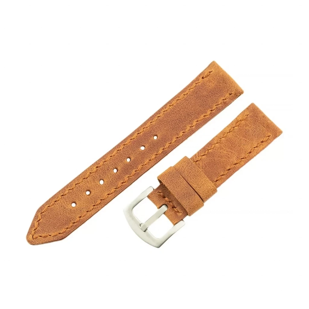 İsme Özel El Dikişli Saat Kordonu - %100 Crazy Deri - AG03002 - Taba