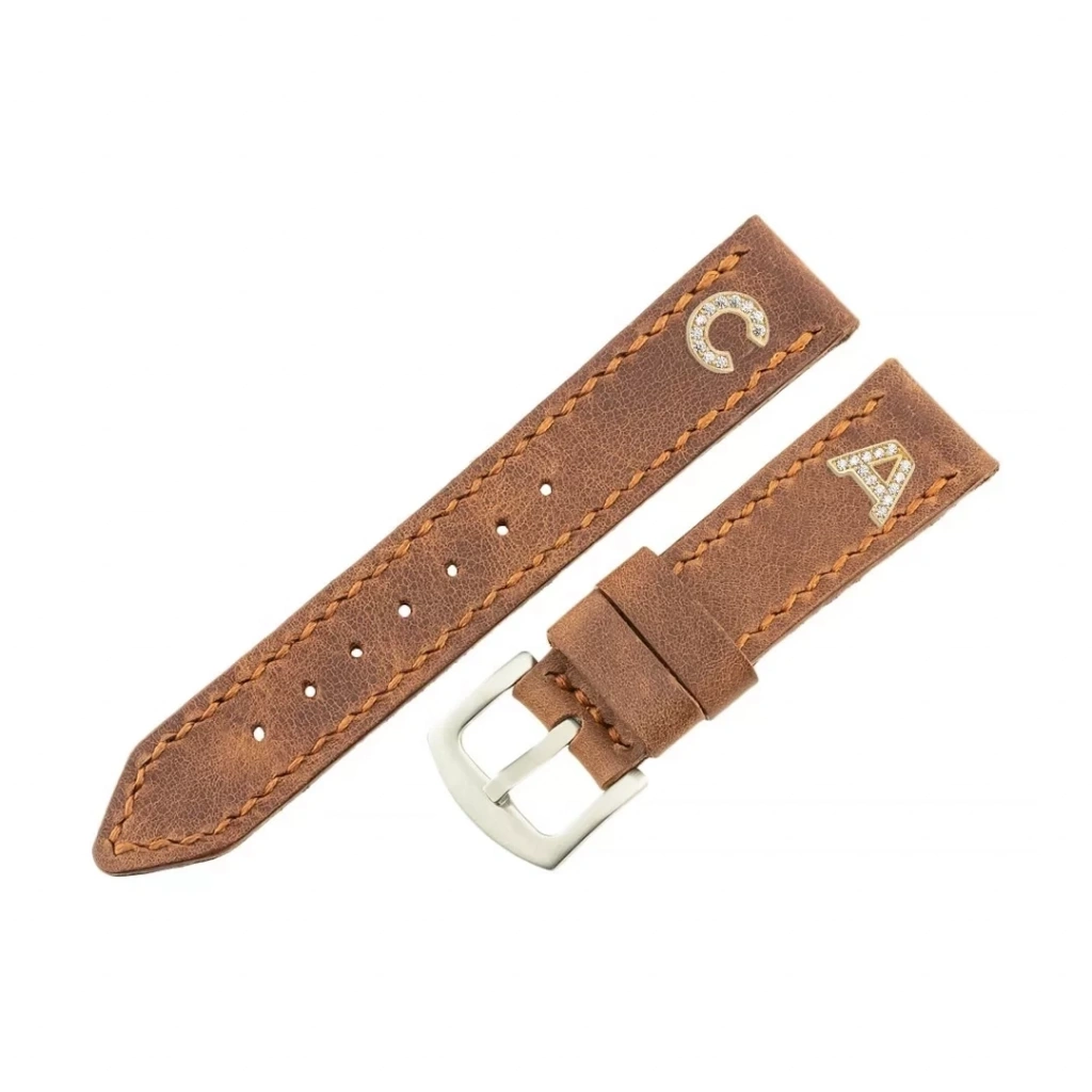 İsme Özel El Dikişli Saat Kordonu - %100 Crazy Deri - AG03002 - Taba