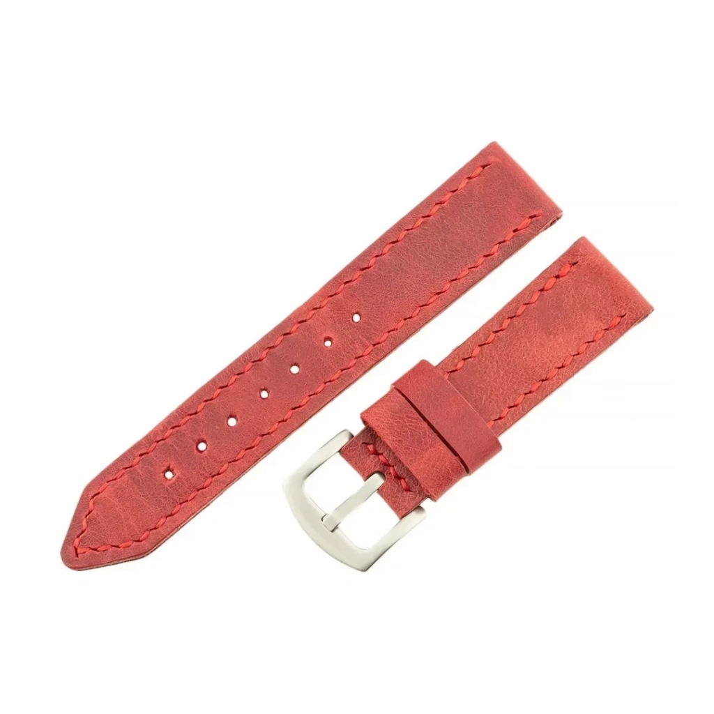 İsme Özel El Dikişli Saat Kordonu - %100 Crazy Deri - AG03002 - Kırmızı