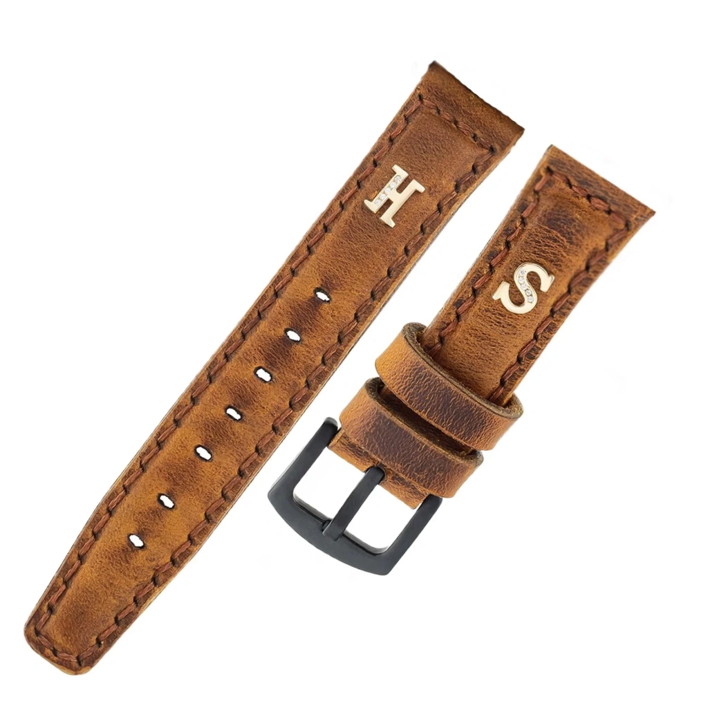İsme Özel El Dikişli Saat Kordonu - %100 Çift Kat Deri - AG03003 - Tobacco